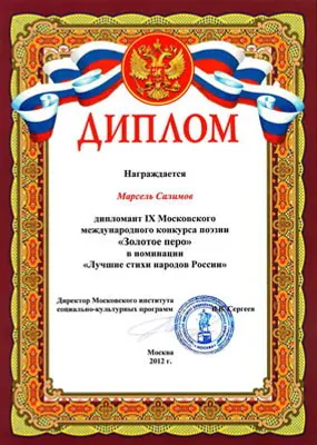 Flower ceremony for winners of the IX international contest of contemporary poetry “Golden Pen”, established by the Union of Russian Writers, Moscow culture department, Moscow Institute of social-cultural programs and scientific-publishing center “ACADEMIKA”, has taken place in the capital of Russia. Our compatriot, popular Bashkir poet-humorist Marcell Salimov is announced the winner in the nomination “The best poems of Russia’s nations” and is rewarded with the corresponding diploma.