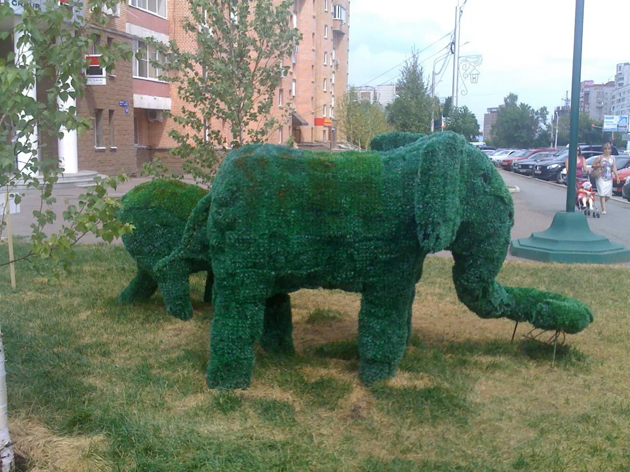 Green elephants appeared in the centre of Ufa, in Tsyurupy Street, near to "Ufa-Arena" Ice Palace. This unusual sculptural composition causes great delight and excitement among street walkers. Everyone who passes by, stops, smiles, and many people take out their mobile phones and start making pictures.