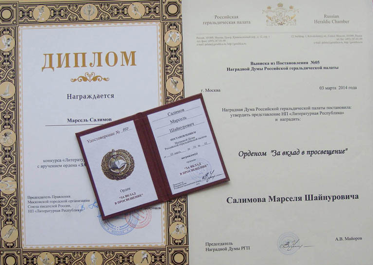 Russian Herald's College awarded Marsel Salimov the Order "For Contribution to Enlightenment".