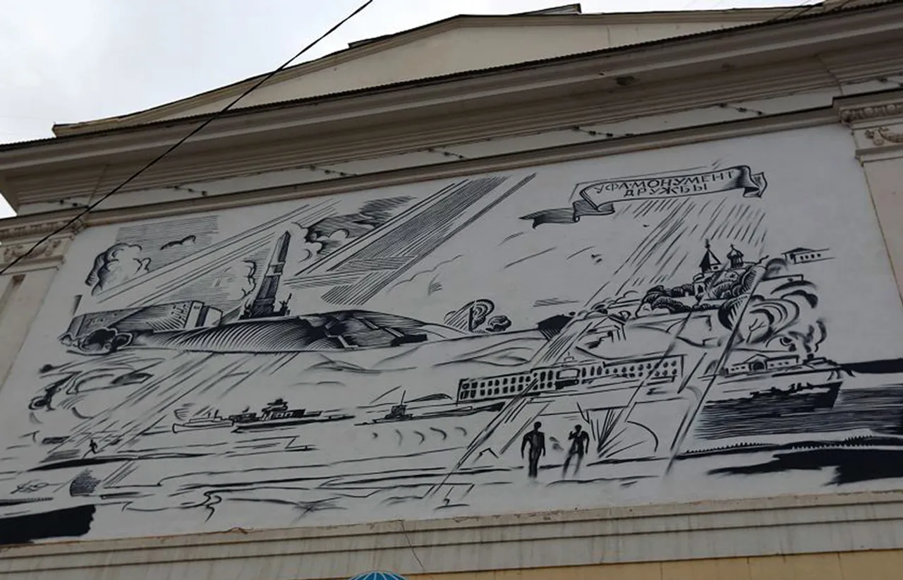 UFA, 21 September 2014. /Bashinform News Agency, Gulfiya Akulova/. A graffiti in memory of the famous Bashkir graphic artist Alexey Korolevsky will decorate a building in Ufa. A large-scale copy of the graphic creation of the artist under the name "Ufa. Monument of Friendship" has been already depicted on the facade of the building in 44/46, Lenin Street. It was the building where the artist's studio was located at his time.