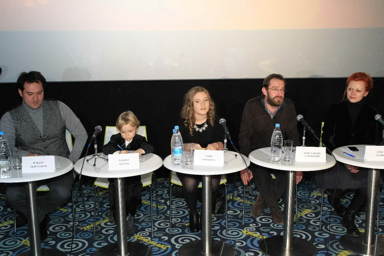 UFA, 19 December 2014. /Bashinform News Agency, Leila Aralbaeva/. A preview of New-Year comedy by Timur Bekmambetov "Elki 1914" was held in the cinema centre "Kinomax" of Planeta shopping mall. The action in the film takes place exactly one hundred years ago on Christmas Day. The film was presented to the Ufa audience by actors Konstantin Habensky, 13-year-old Sophia Hilkova and 7-year-old Daniel Izotov, director and creative producer Olga Harina and opera singer, double winner of "Grammy" Ildar Abdrazakov.