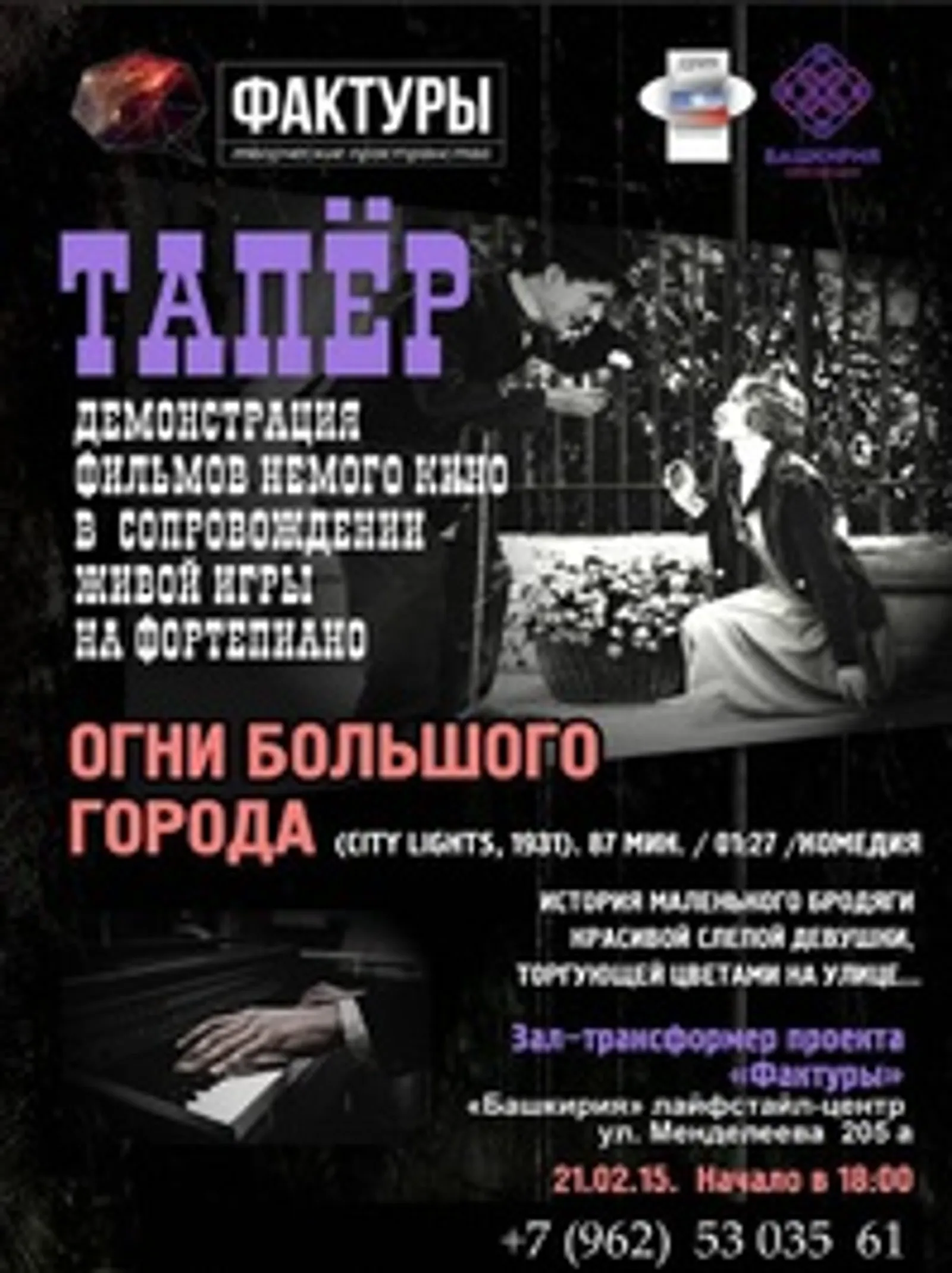 UFA, 13 February 2015. /Bashinform News Agency, Leila Aralbaeva/. On February 21, a series of silent films screening accompanied by piano will be started in the "Faktury" hall in Ufa.