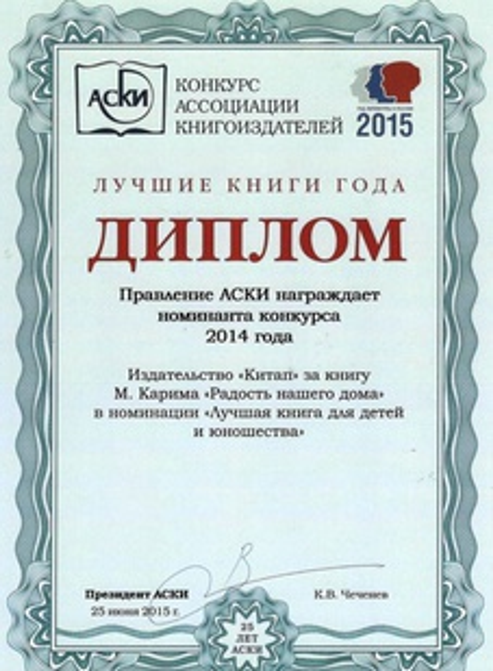 The Kitap publishing house was awarded a diploma for the release of the book by Mustai Karim "The Joy of our House" in the category "Best Book for Children and Youth," the publisher informs.