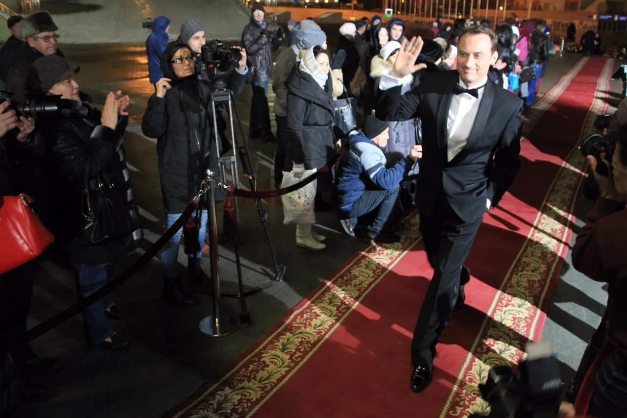UFA, 11 December 2015. /Bashinform News Agency, Leila Aralbaeva/. Ufa, the capital of Bashkortostan hosted the official opening ceremony of the 2nd International Festival of National and Ethnic films "Silver Akbuzat". Celebrities, festival participants from 11 countries and regions of Russia, representatives of the republican cinema industry went on the red carpet to the Congress Hall. In the lobby all participants took photos against the backdrop of colourful film banners.