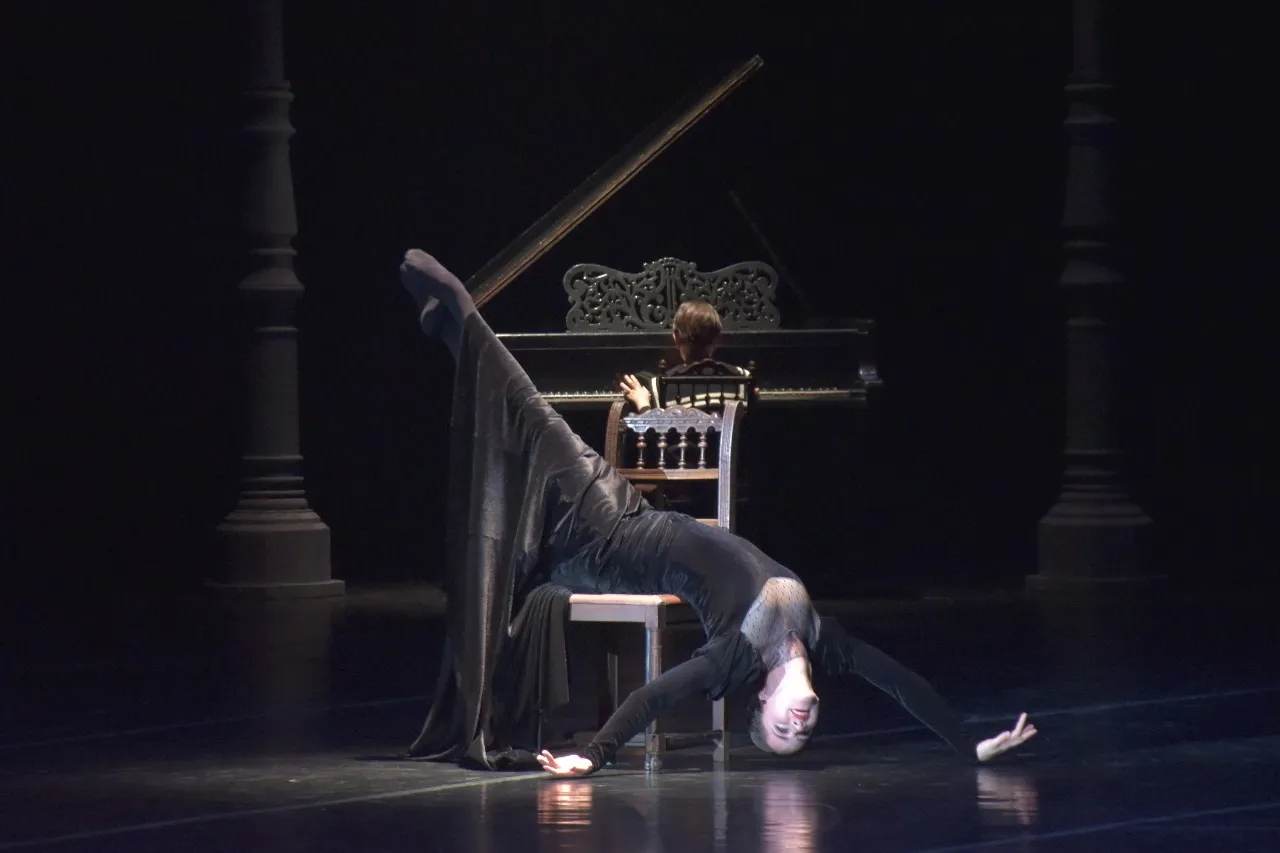 Plastic metaphors by the director-choreographer Angelika Kholina, dramatic music by Alfred Schnittke, laconic scenography by Marius Yatsovskis gives the classic story a new, unusual interpretation. The costumes by Juozas Statkevichus, lighting designer works of Tadas Valeyka saturate the performance with necessary accents.