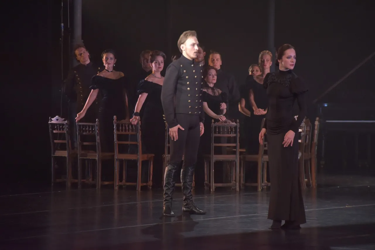 The lead role of Anna Karenina was masterly performed by Olga Lerman, who just a day ago played Tatiana in "Eugene Onegin". Dmitry Solomykin was in the role of Vronsky, Evgeny Knyazev - Karenin.