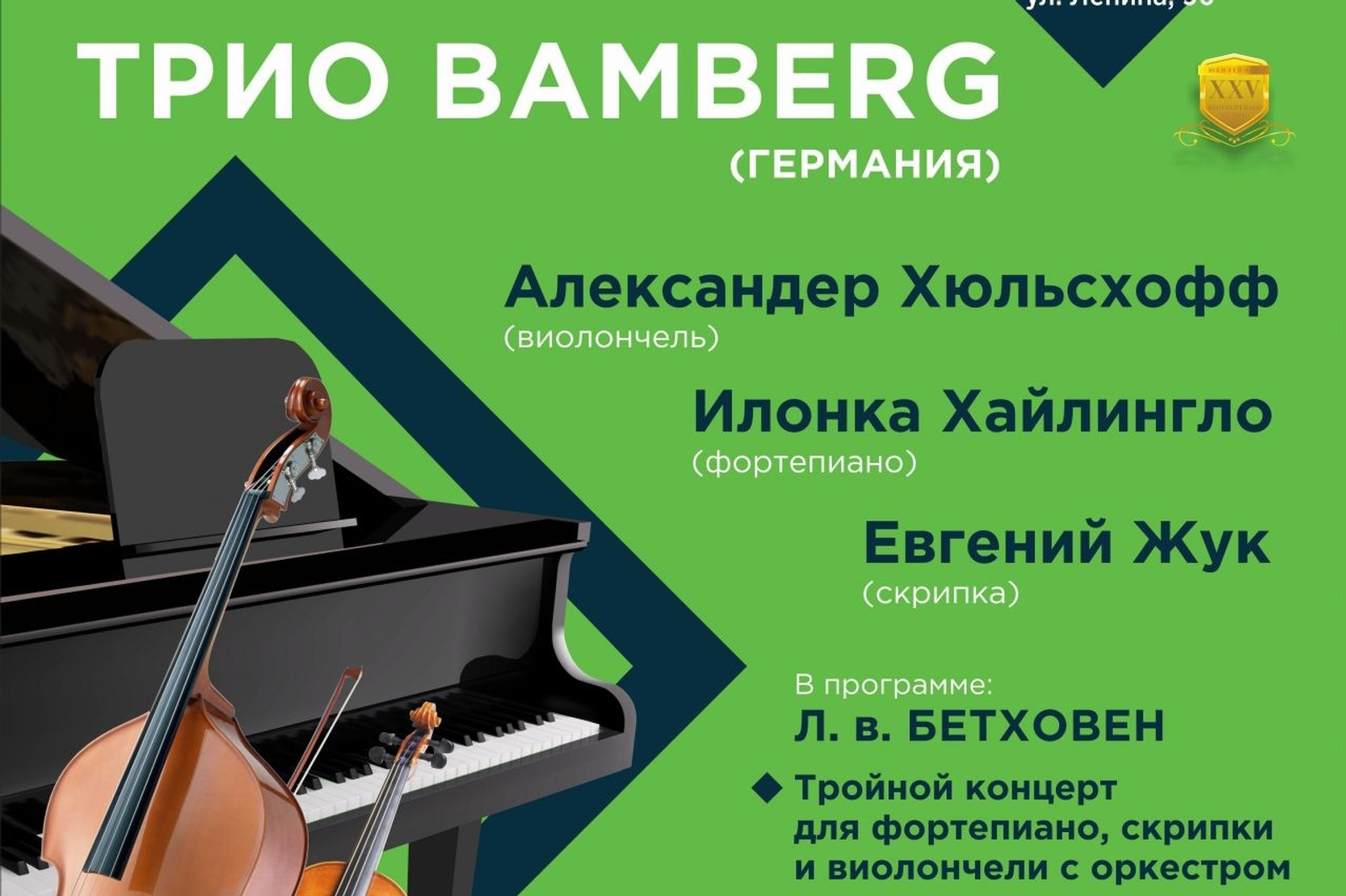 The Trio Bamberg was founded in 1994 in Stuttgart by the Russian violinist Jewgeni Schuk and his German colleagues - pianist Robert Benz and cellist Stefan Gerlinghaus. The ensemble is one of the best contemporary chamber music ensembles in Europe. Since then, the composition of the team has changed. The permanent ensemble member Jewgeni Schuk, one of the most famous cellists of Europe Alexander Hülshoff and pianist Ilonka Heilingloh will arrive in Ufa.