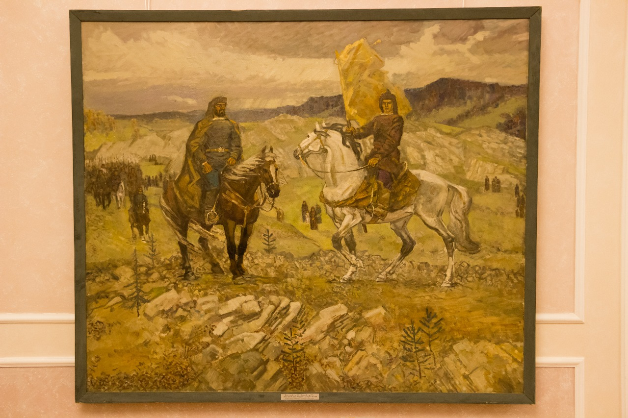 The theatre museum hall hosts the exposition "Salavat Yulaev in People's Memory" devoted to the image of this national hero in the art. "Among the works there is duology by Zufar Gayanov and Fayzrahman Ismagilov provided by the M.V. Nesterov’s Bashkir Art Museum, for which the artists have been awarded the prize named after S. Yulaev, "Portrait of Salavat Yulaev" by Gabdulla Mustafin, work by Vagiz Shayhetdinov from his personal collection - "Cave of Salavat. Return", the head of the museum Ramila Latypova informs.