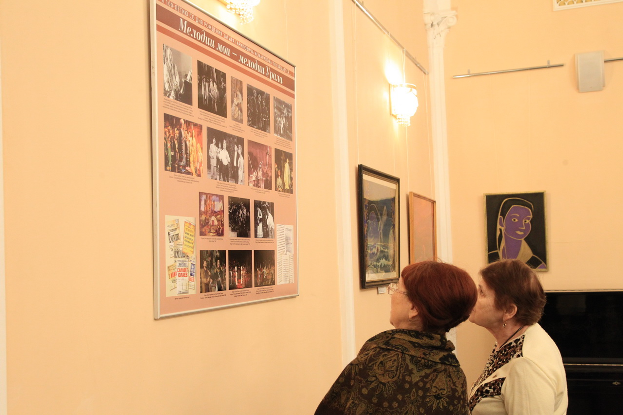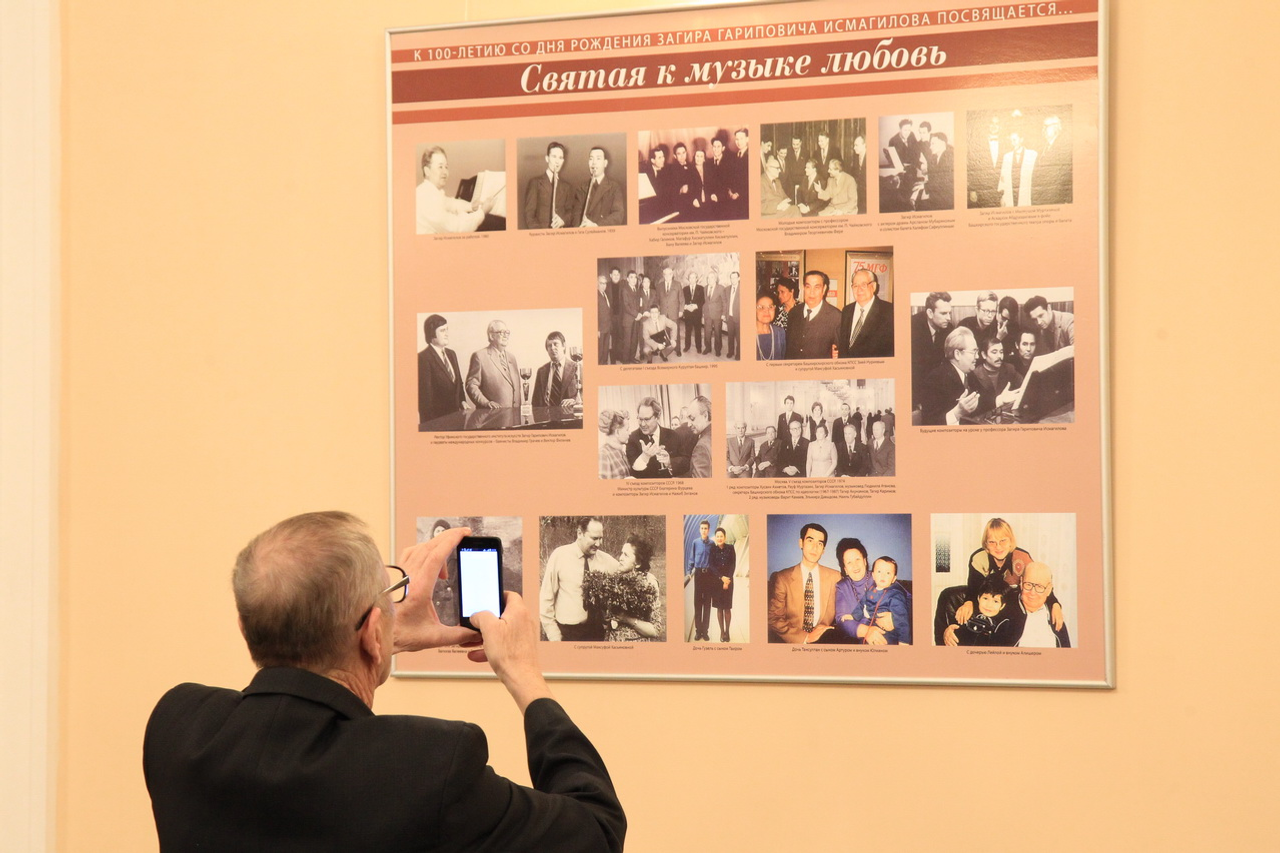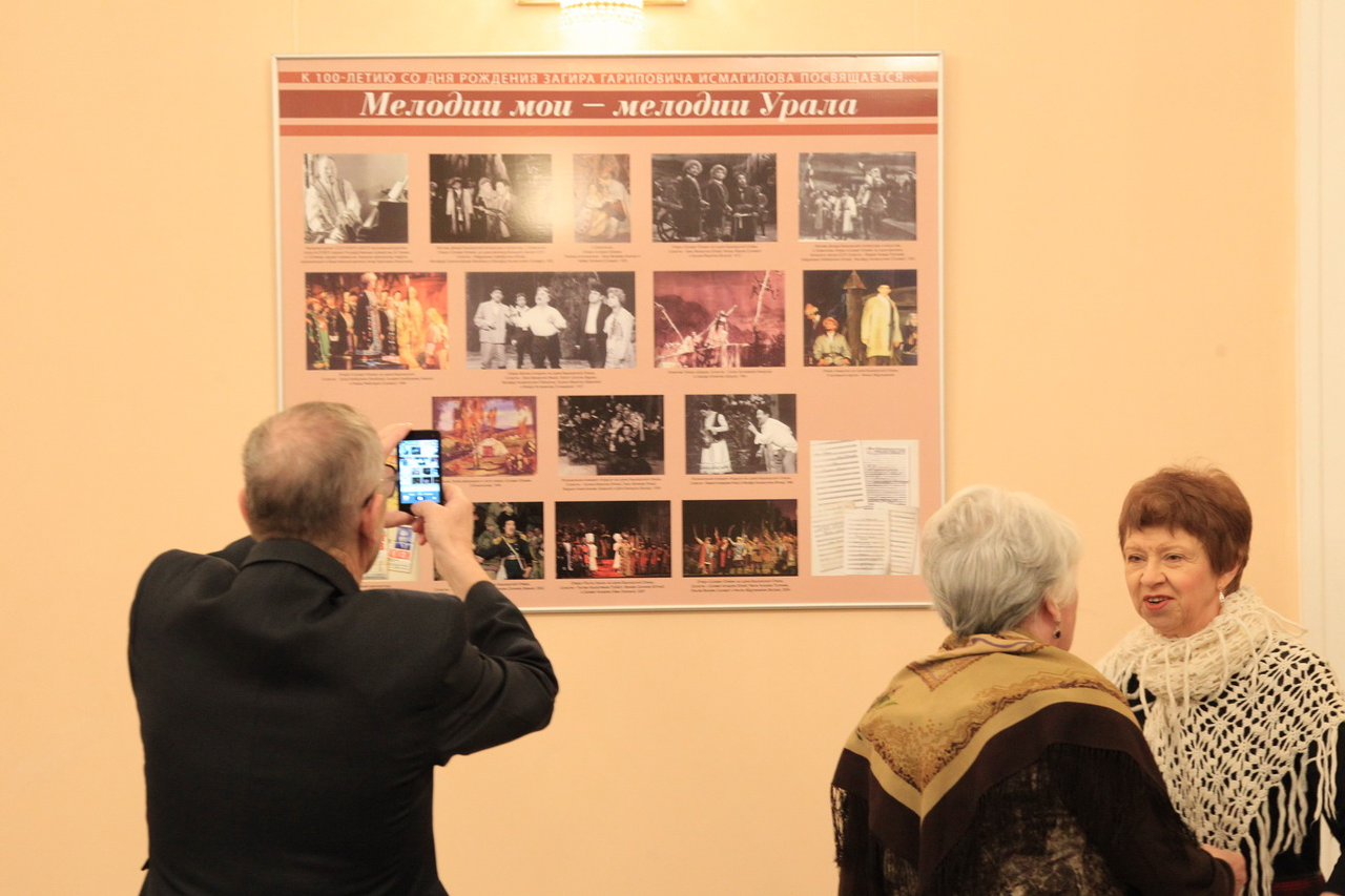 UFA, 20 December 2016. /Bashinform News Agency, Leila Aralbaeva/. Exhibitions devoted to the 100th anniversary of Zagir Ismagilov opened at Bashkir Opera and Ballet Theatre. The museum has two stands dedicated to the composer's personality, milestones of his creative life, communication with colleagues. Also it features rare family pictures.