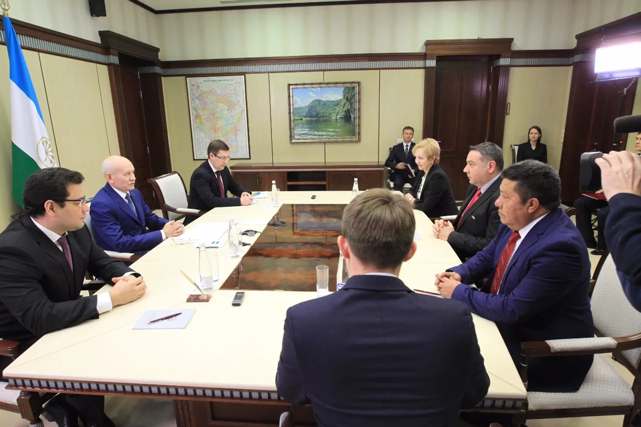 UFA, 20 December 2016. /Bashinform News Agency, Alexander Smirnov/. On December 19, the Head of Bashkortostan Rustem Khamitov met with the President of the International Council of Organizations of Folklore Festivals and Folk Arts (CIOFF) Philip Bossan and vice-president of CIOFF for Culture Alejandro Camacho González as well as the President of the Russian national section of CIOFF, director of the State Russian House of Folk Arts Tamara Purtova.