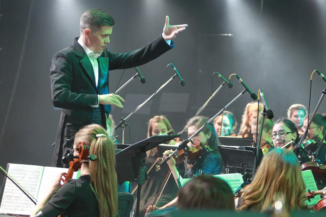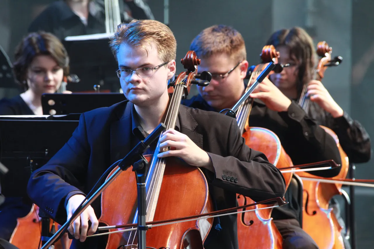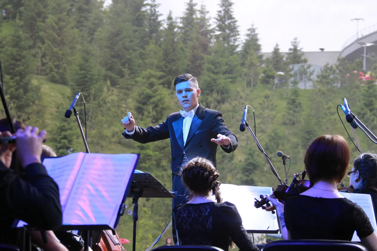 The Youth Symphony Orchestra under the baton of the conductor Linar Davletbaev played at the main outdoor concert venue in the city. The concert featured works of popular classics - music by Tchaikovsky, Grieg, Schubert, Zagir Ismagilov, Murad Akhmetov. The famous young musicians - cellists Rustem Khamidullin and Ayaz Nuhov, kurai player Arthur Gaisarov, flutist Inna Fomenko, vocalists Ilgam Valiev, Artur Kaipkulov, Gulnara Valeeva, Aida Gabdulhakova, Regina Zvegintseva, Idel Aralbaev and Radmir Khasanov performed at the concert.