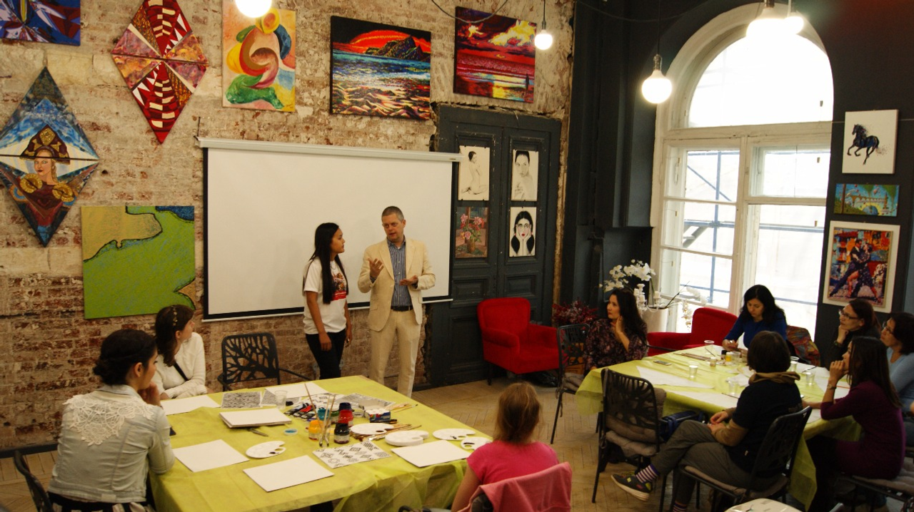 Due to this support, the first exhibitions of the project started in Moscow at once on three venues: Artime Gallery in Kuznetsky Most, in the "Imperium group" exhibition hall in the "Cosmos" hotel complex and in three spacious halls of the "Belyaevo" Art Gallery - "Bashkir", "Italian" and "Chinese" halls. More than one hundred works by authors of different countries coexisted there with national souvenirs and author's models of clothing in ethnic style - the works by the Ufa artist Raushania Badretdinova and Italian Nikolinka Nikolova.