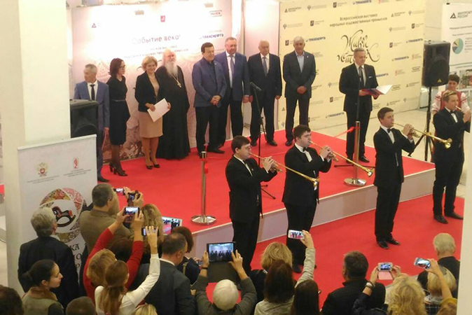 UFA, 18 October 2017. /Bashinform News Agency, Alim Faizov/. The exhibition of folk art crafts "Zhivoi Istochnik" ("Live Spring") was opened in the "Manege" central exhibition hall in Moscow. The opening ceremony was attended by Deputy Prime Minister of the Russian Federation Olga Golodets, who voiced a welcome letter from President Vladimir Putin. The chairman of the organizing committee of the exhibition was the first deputy chairman of the State Duma Culture Committee Joseph Kobzon. The company from Bashkiria - the Agidel Bashkir art crafts participates in the exposition with its exhibits.