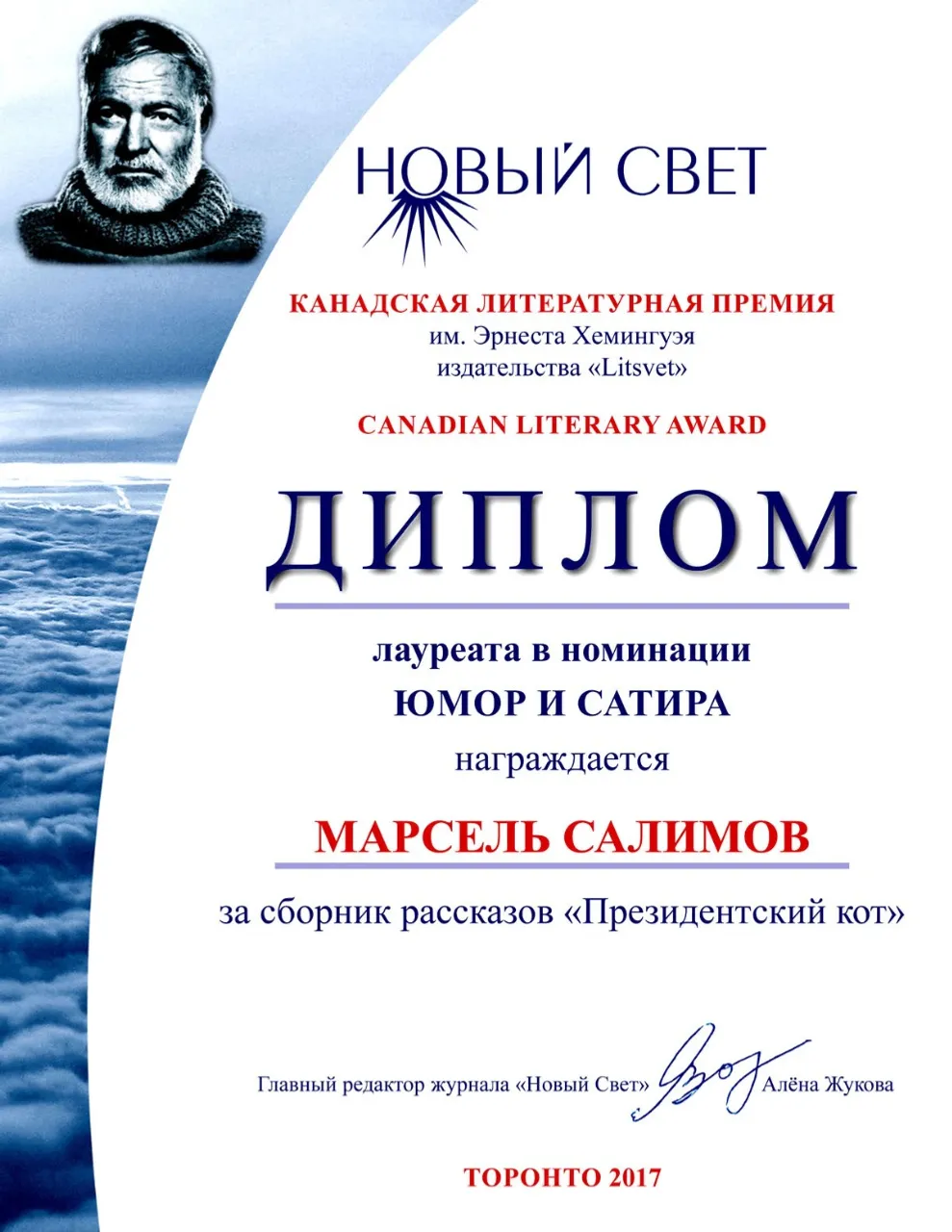 Bashkir writer-satirist Marsel Salimov was awarded Ernest Hemingway International Prize in Canada