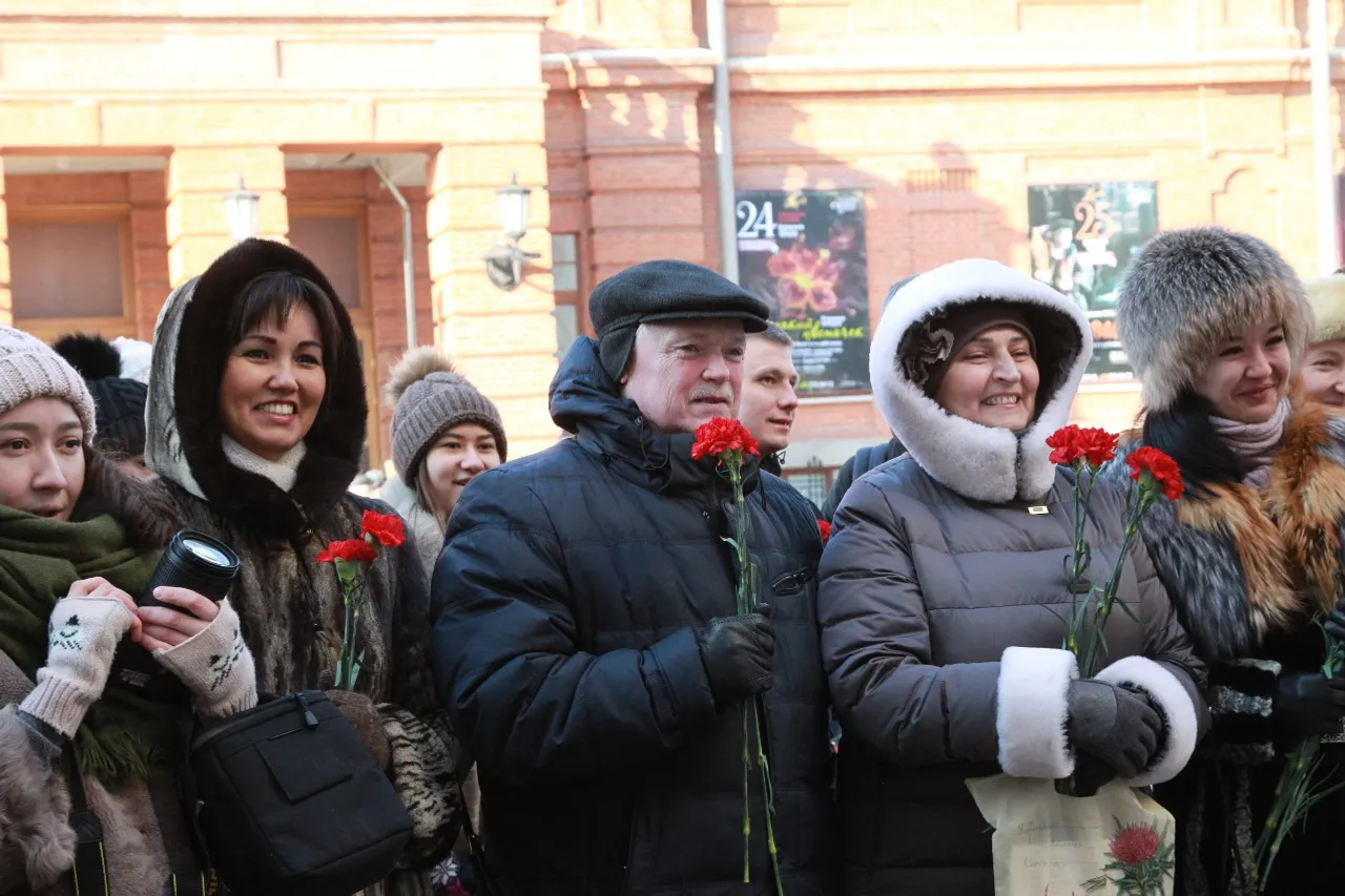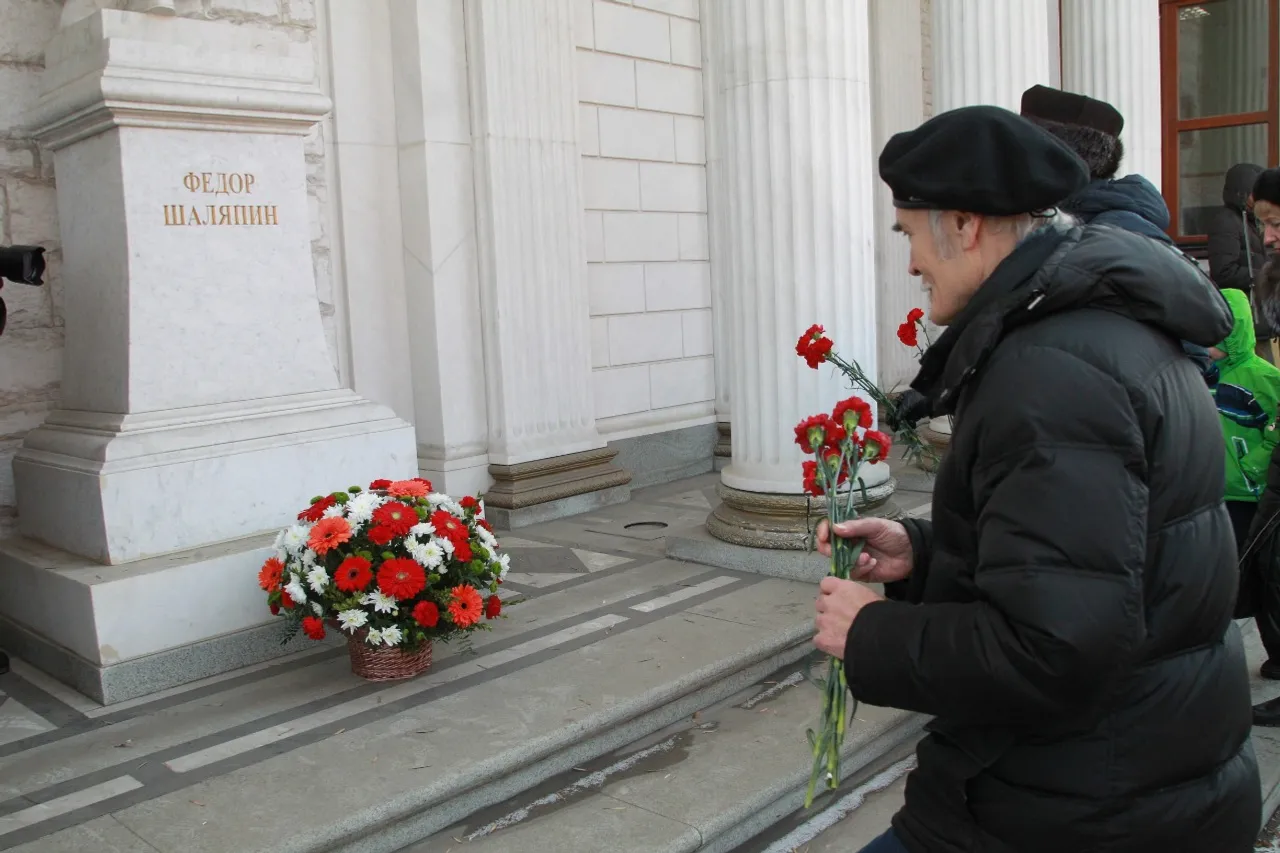 UFA, 14 February 2018. /Bashinform News Agency, Leila Aralbaeva/. In Ufa flowers were laid to the monument of the great Russian singer Fyodor Chaliapin, established near the Ufa Institute of Arts. It was here, in the then building of the Noble Assembly, where the opera debut of the young artist took place. Yesterday it was 145 years since his birth.