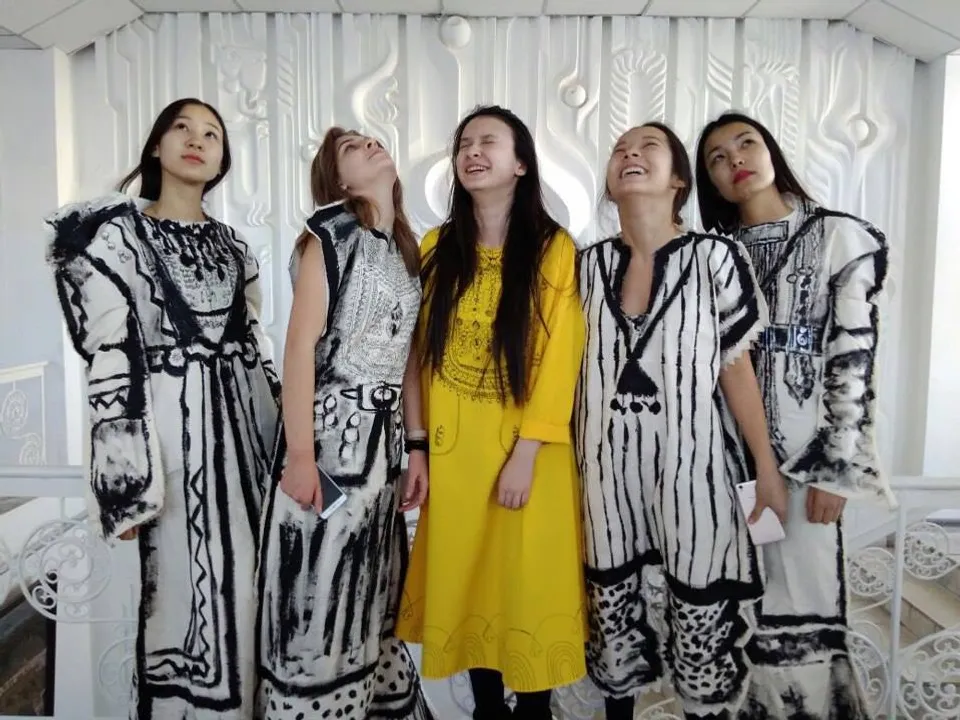 The collection shows ethnic themes of two related peoples - Bashkir and Kazakh. The models will display one-color dresses hand-painted by the Kazakh artist Radina Batpenova under sketches of the designer Alexandra Hisametdinova. Graphics and tenderness, modernity and tradition are the key features of the new tandem collection. The show will be accompanied by live music in the national lounge style.