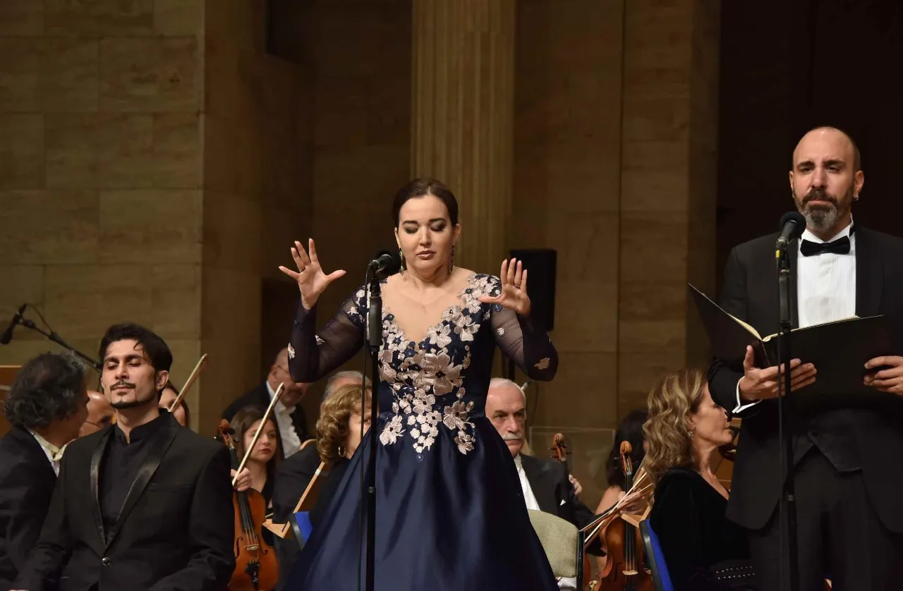 The Turkish premiere conducted by Christoph Poppen featured the artists: soprano, Astana Opera soloist, honored artist of Bashkortostan Alfiya Karimova (Bashkortostan, Russia), tenor Ilham Nazarov (Azerbaijan), baritone Arda Aktar (Turkey) and choirs of Astana and Almaty (Kazakhstan).