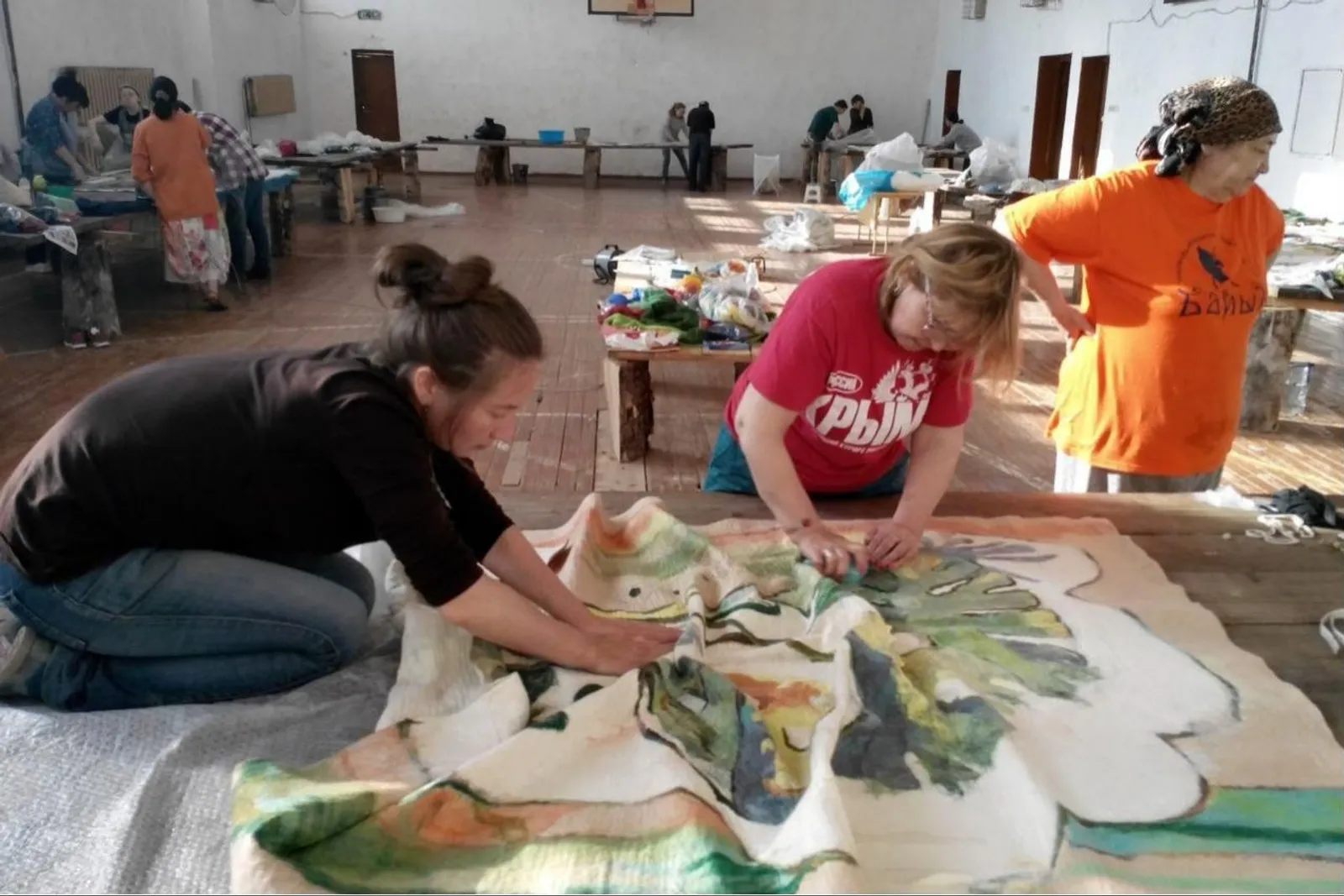 Felt craftsmen created panel for Bashkir yurt interior decoration in Bashkiria