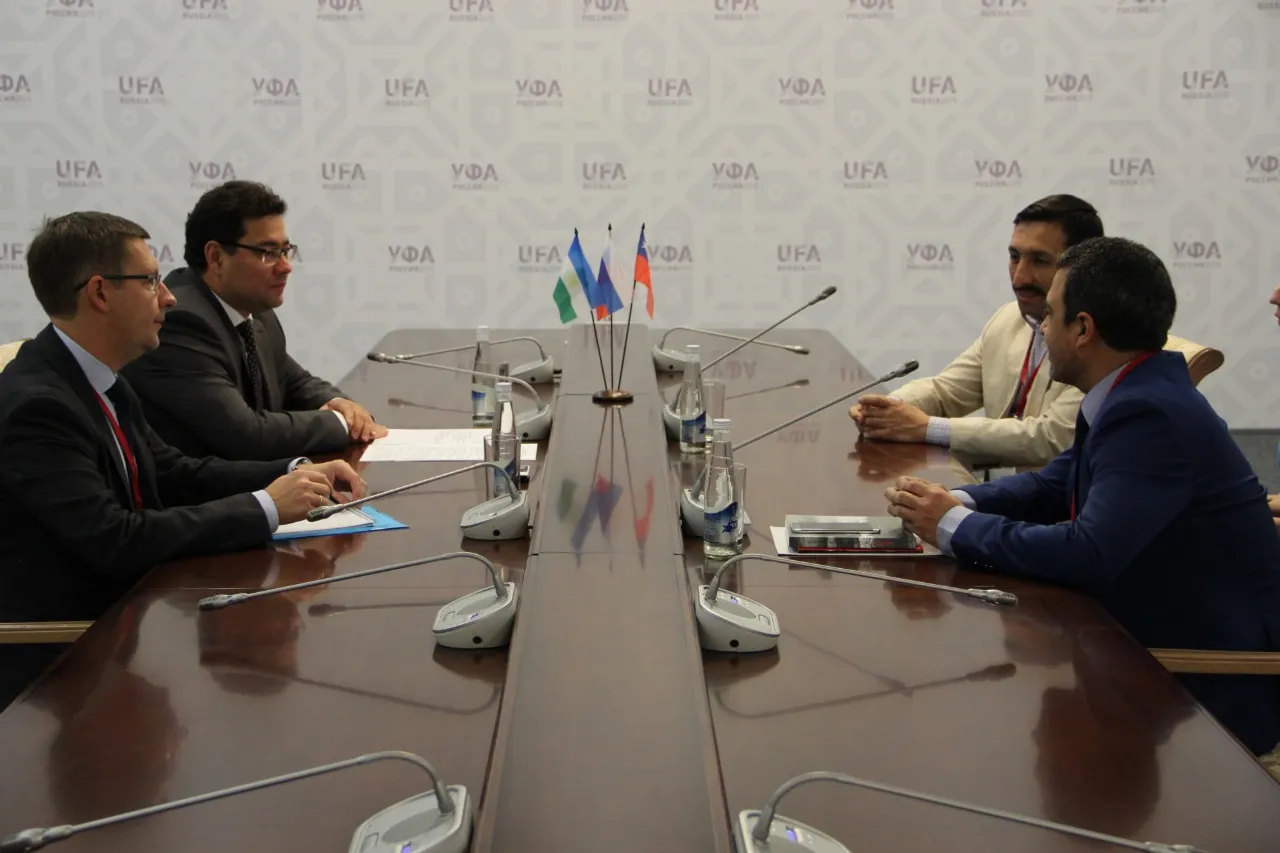 UFA, 24 September 2018. /Bashinform News Agency, Ksenia Kalinina/ translated by Tatiana Aksyutina/. On September 22, in the Congress Hall of Ufa, a meeting was held between the Deputy Prime Minister of the Government RB Salavat Sagitov, the Chairman of the State Committee for Foreign Economic Relations Ruslan Mirsayapov, with the representative of the Latin American and Caribbean Islands sector in the Council of CIOFF Victor Fierro and the national delegate from the Republic of Chile, Christian Hake. The sides discussed the cultural issues of the two republics, options for cooperation, as well as the preparations for the World Folklore Festival, which will be held in Bashkortostan in 2020.