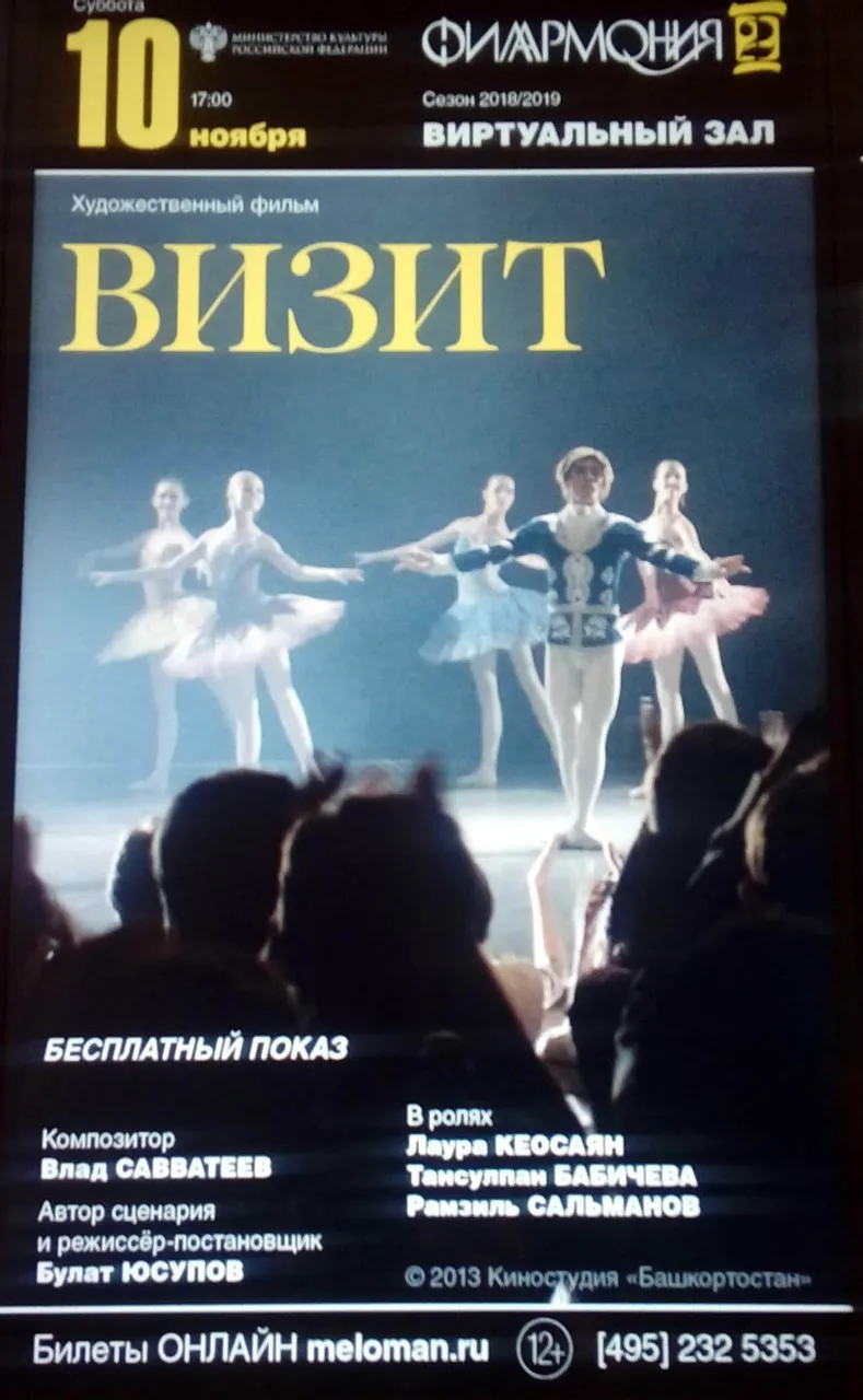 On November 10, within the framework of the project, the Nureyev Seasons Film Festival opened in the Philharmonia-2 Virtual Hall. At the opening of the film festival, a short feature film by Bashkir director Bulat Yusupov “Visit” dedicated to Rudolf Nureyev was shown. A theater and cinema actress Laura Keosayan took part in the meeting with the audience.
