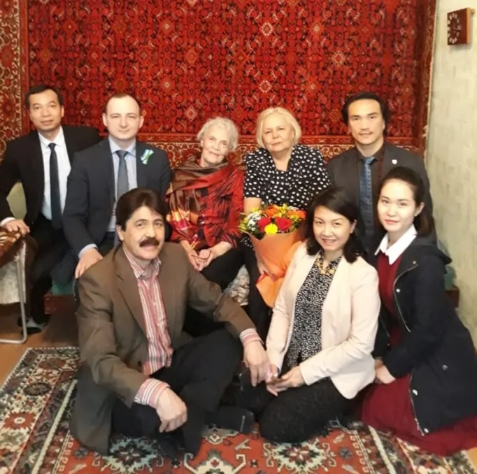 A delegation of Vietnam visited Ufa to participate in jubilee celebrations for the 100th anniversary of the republic. As part of their trip, the guests visited the Faizi Gaskarov State Folk Dance Ensemble, where they met with the honorary veteran of the Gaskarov Ensemble, Honored Artist of BASSR Ekaterina Varlamova.