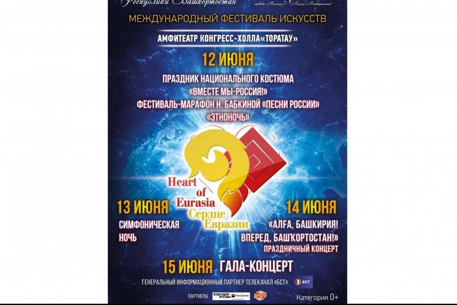 On June 14, the festival will be continued by a festive concert dedicated to the 100th anniversary of the Republic of Bashkortostan, “Alga, Bashkiria!” On this day, the honored artist of the Russian Federation Alsu, Pizza group led by Sergey Prikazchikov, the finalist of the Voice TV contest Rushana Valiyeva, the group Zaman (Moscow), and others will perform. Ufa residents and guests of the capital will also see joint performances by the National Orchestra of Folk Instruments RB under the direction of Linar Davletbaev with Robert Yuldashev and his team “Kuraisy”.