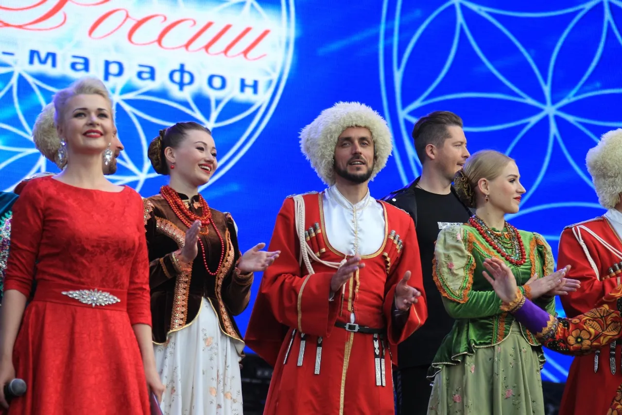 The second third of the night featured the artists of the 12th All-Russian Marathon Festival “Songs of Russia” by Nadezhda Babkina. Note that this year the festival-marathon “Songs of Russia” takes place only in Bashkortostan and is dedicated to the 100th anniversary of our republic. The festive show participants included the Moscow State Academic Theater of Folklore “Russian Song”, the “Russian Song” ensemble, the “Living Planet” show-ballet, the “Posle Odinnadtsati” folk group, the “Rossiyane” ensemble, Yevgeny Gore, the "Miras" folklore ensemble of songs and dance, "Zainetdin" ethnic-show project, and others.