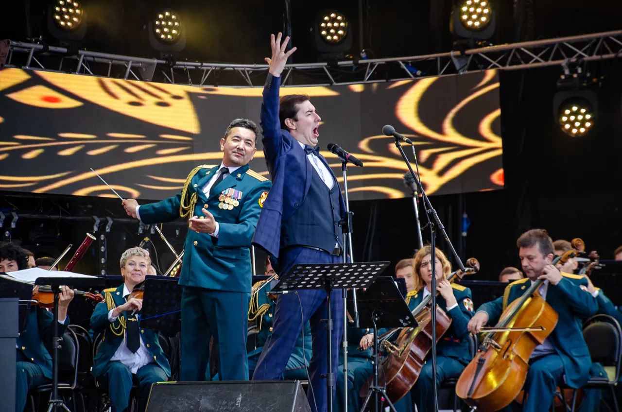 In the first half of the evening, one of the best military art groups, the Exemplary Orchestra of the National Guard of the Russian Federation, performed for the guests of the festival. The head of the Rosguards Symphony Orchestra is our compatriot, Honored Artist of the Republic of Bashkortostan, Lieutenant Colonel Azat Shahmuhametov.