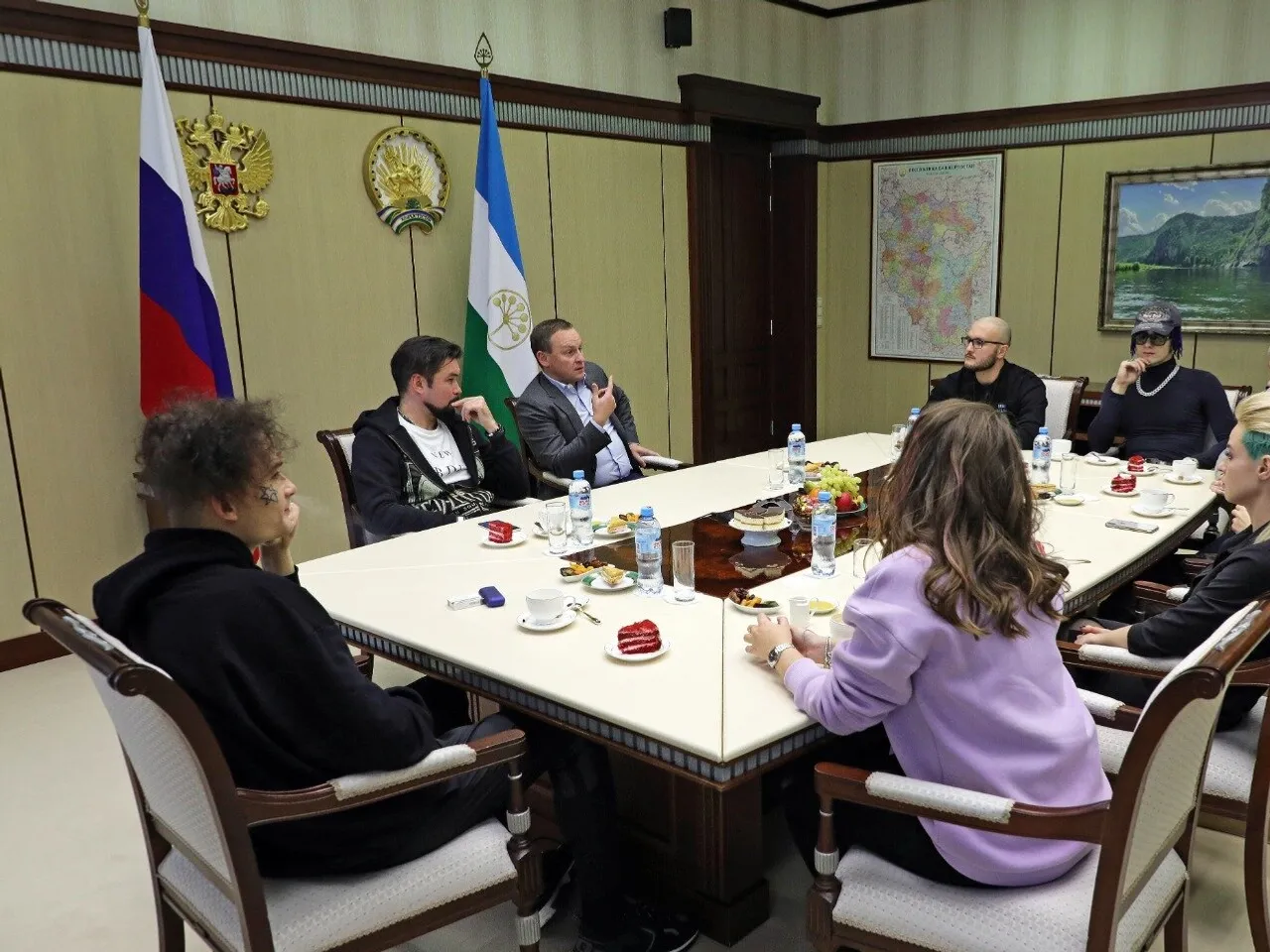 On December 11, artists Alisher Morgenstern, Vitaliy Alexandrov (project “Loud”), Danil Gareev (project “Krek”) and the organizers of the All-Russian rap festival “New Atlanta” met with the Chief of Staff of the Head of the Region Alexander Sidyakin and the Chairman of the Board of Directors of Bashinform JSC Rostislav Murzagulov.