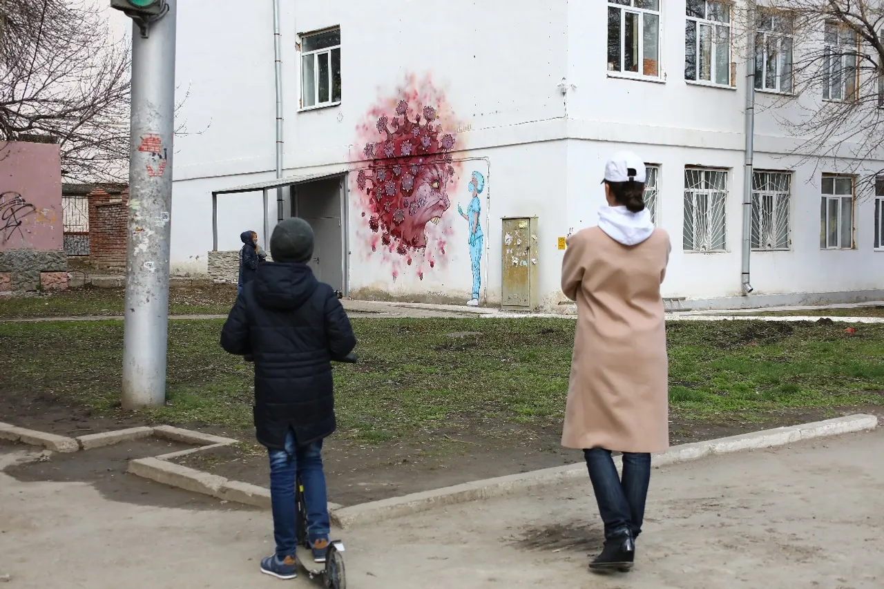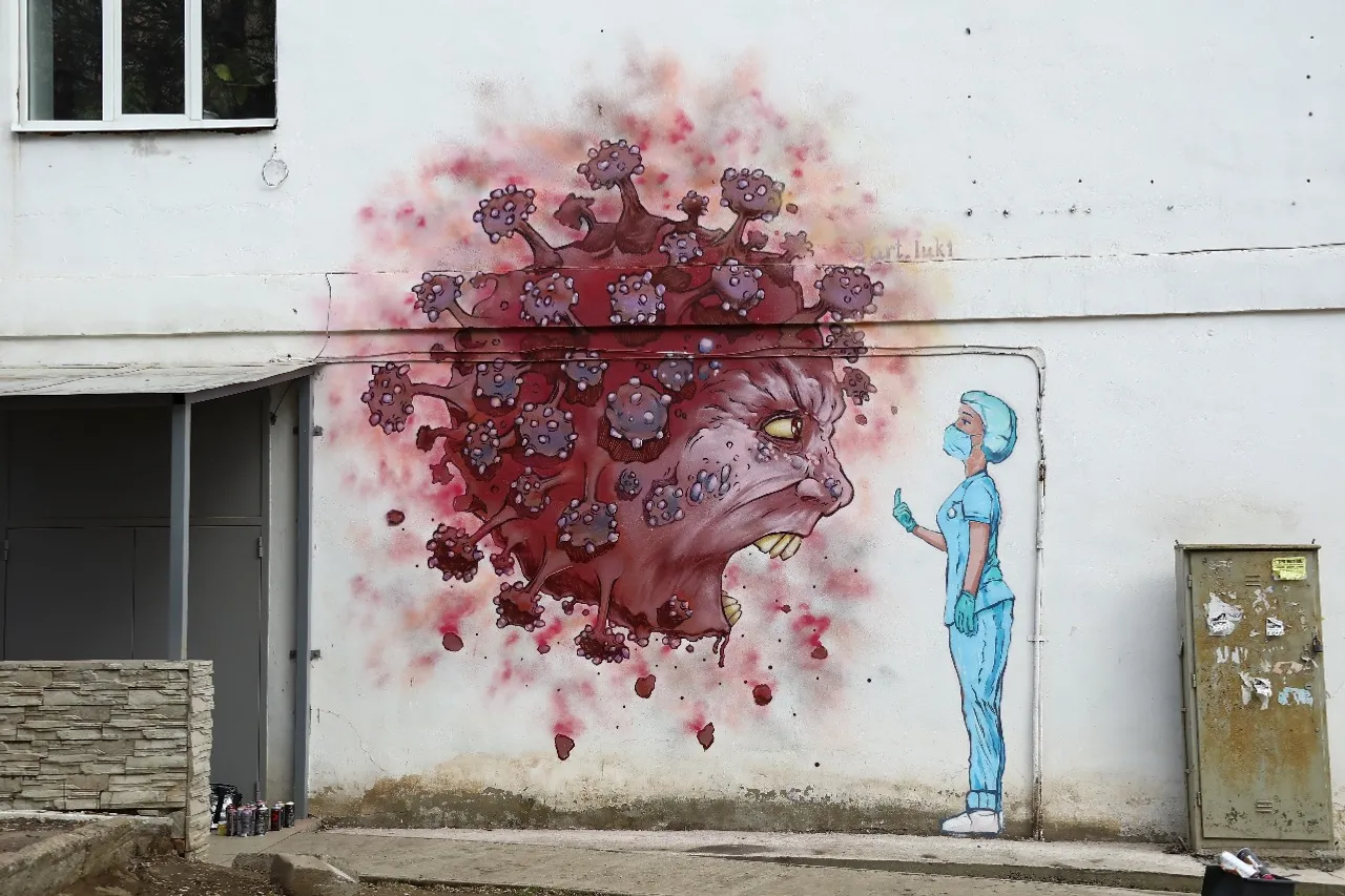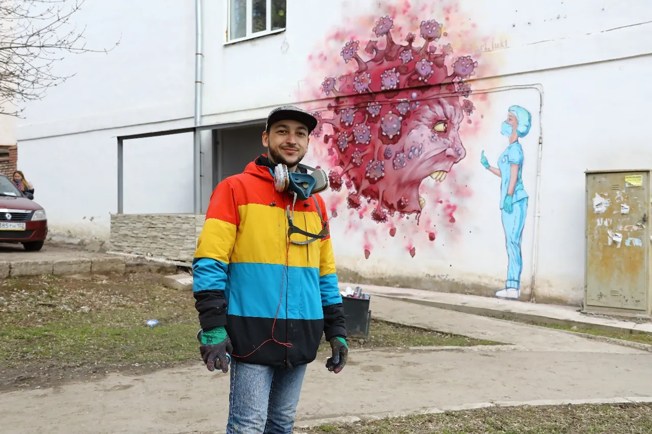 In Ufa opposite the Kuvatov Republican Clinical Hospital, the artist Arthur Lukyanov painted graffiti in support of 1,200 medical professionals and patients who are in strict quarantine here due to the coronavirus.