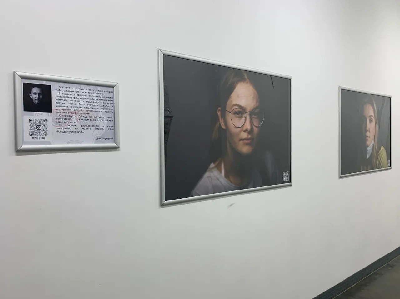 The gallery contains 17 portrait photographs of doctors who agreed to take part in this photo project. There is a QR code next to each portrait, scanning which visitors will read a post with a doctor's story about their work in the hospital. Moreover, on the white poster located at the end of the exhibition, guests will be able to leave words of gratitude to the doctors who continue to fight every day to save their patients' lives.