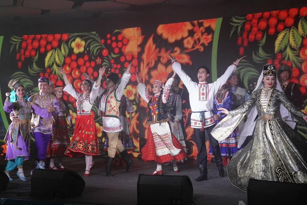 The night's program was completed by the performances of the Faizi Gaskarov State Academic Folk Dance Ensemble, the Miras Folklore Song and Dance Ensemble, and the People's Artist of Bashkortostan Robert Yuldashev with the Kuraisy group.