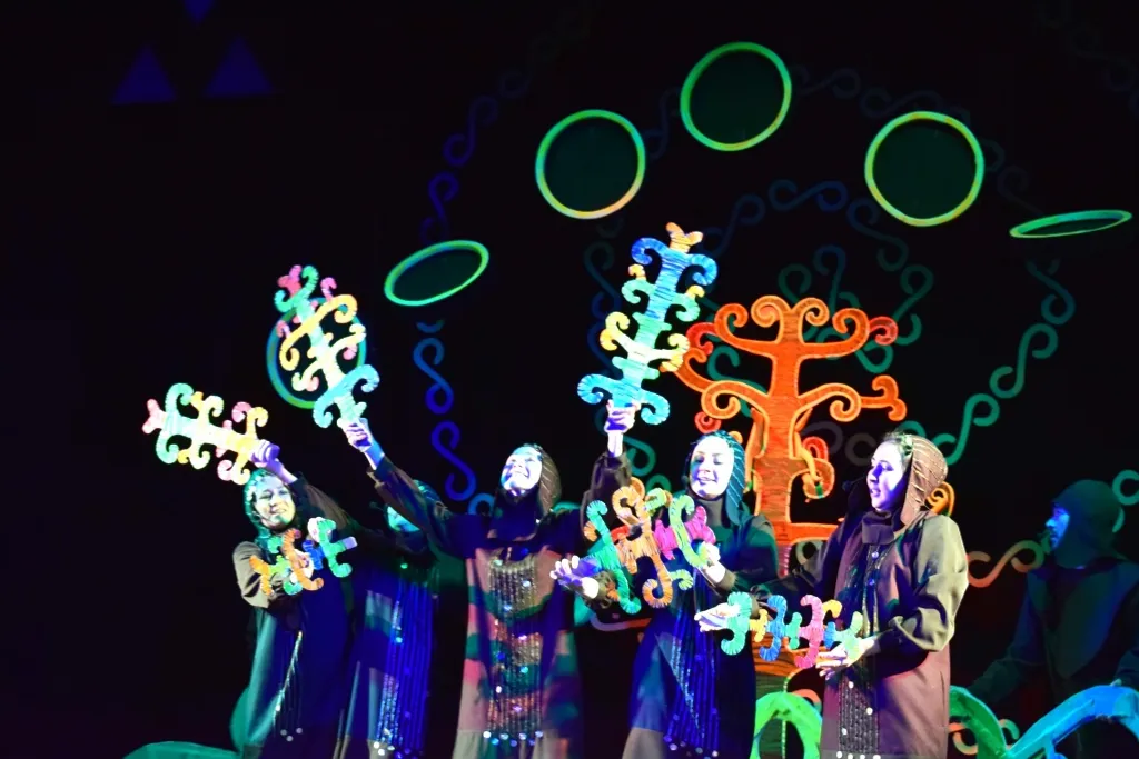The performance "What Is The Ornament Singing About?" has absorbed several genres: it is a synthesis of drama and puppet theater, animation, and storytelling. The play is narrated by Olga Sharafutdinova, People's Artist of the Republic of Bashkortostan, and Alexander Verkhozemsky, Honored Artist of the Republic of Bashkortostan. For almost an hour and a half on stage, the audience can observe how legends different in style, genre, and content are woven into one story, forming a single ornament.