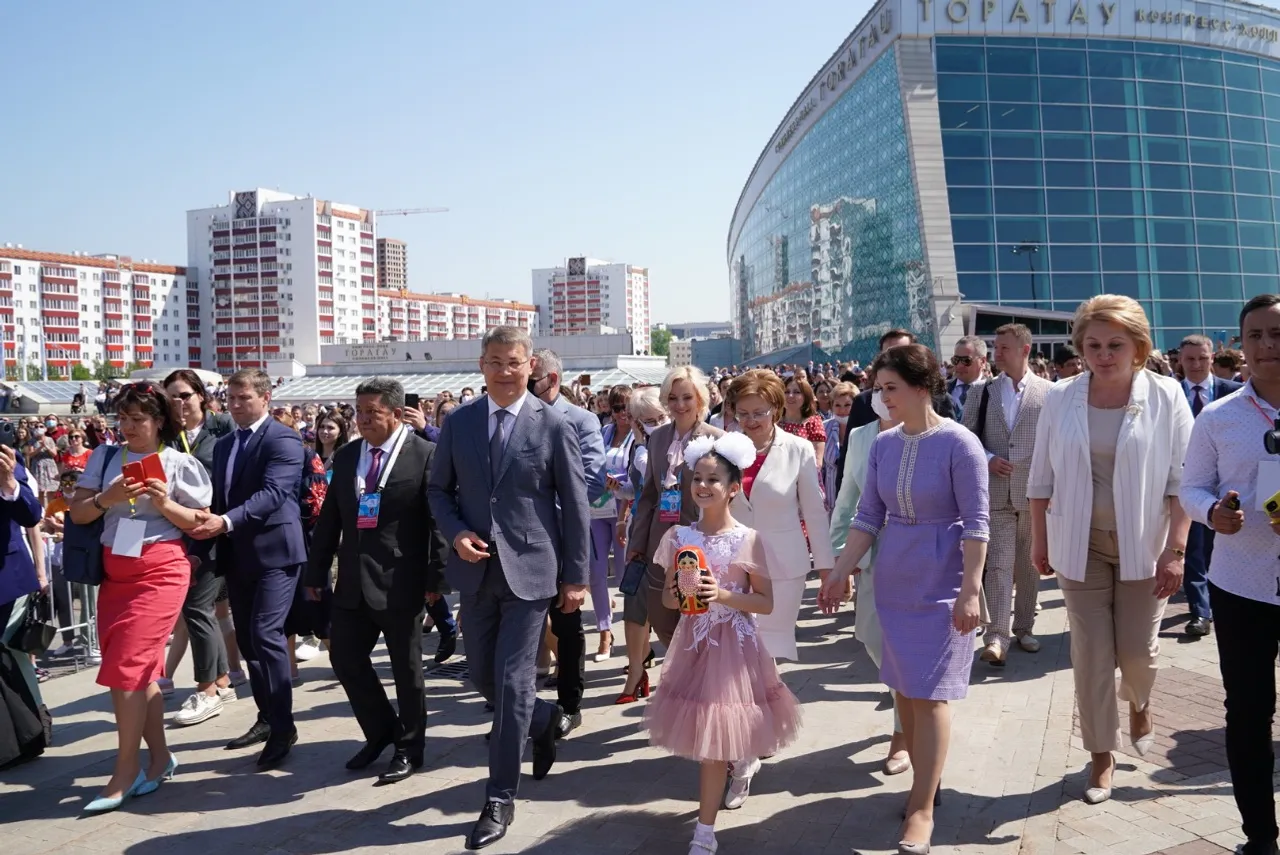 The event very colorfully started within the First Culture Forum "ART-Kurultay" framework, which is taking place these days in the Bashkir capital. After a plenary session, 700 participants of the forum, together with the Head of Bashkortostan Radiy Khabirov and guests of honor, went to the square in front of the Congress Hall for a solemn ceremony.