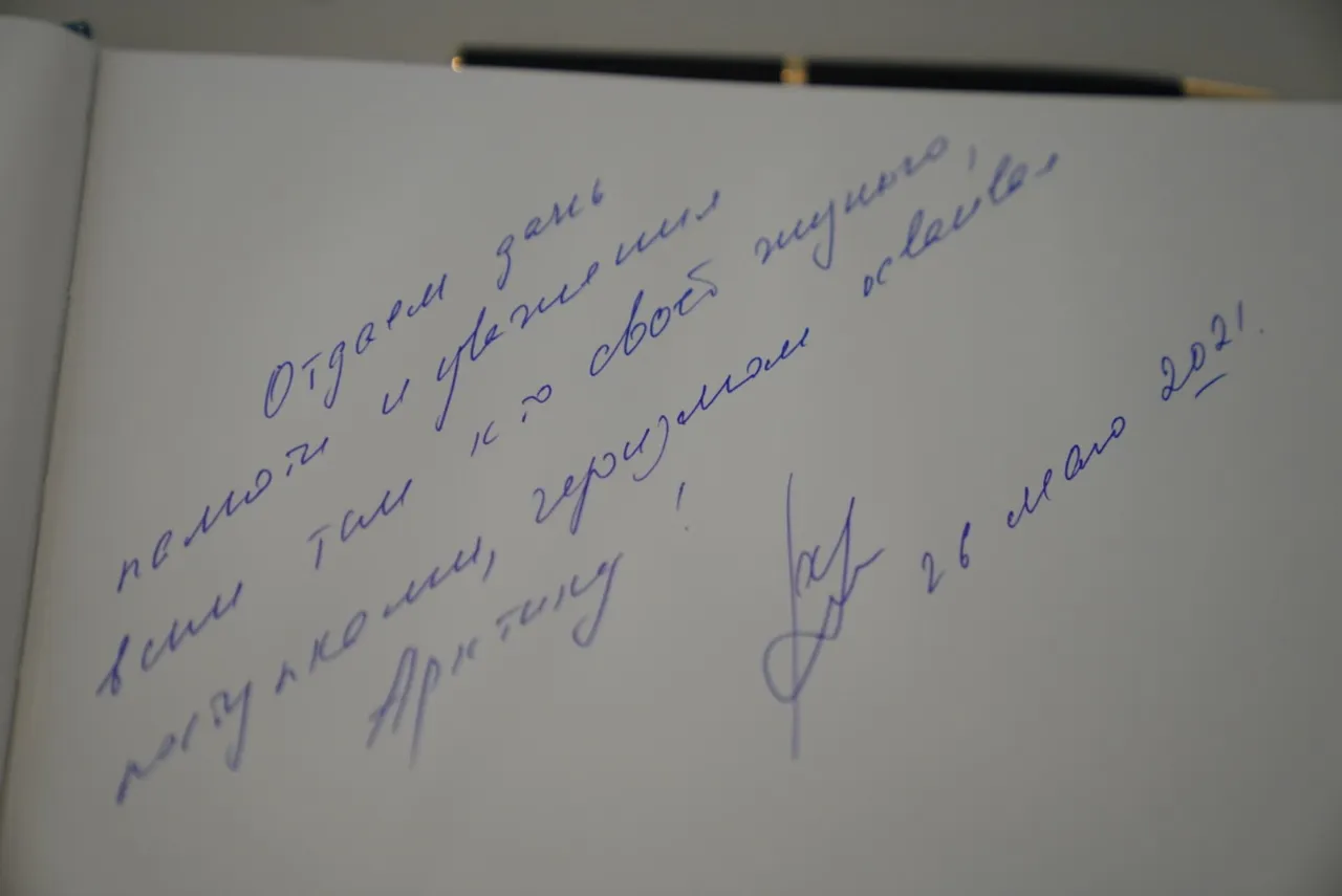 Radiy Khabirov left an entry in the book of honored guests after inspecting the exposition of the polar museum: