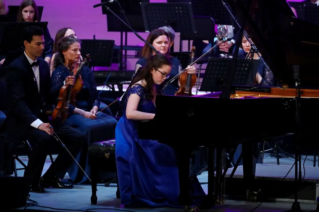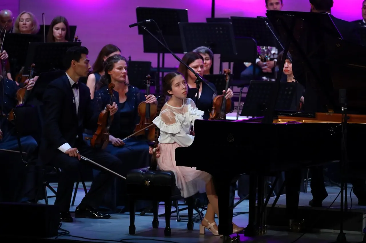 The program was continued by the Ufa musician, winner of international competitions, scholarship holder of the Head of the Republic of Bashkortostan, student of the Secondary Special Music College Eva Minniakhmetova, and winner of the Silver Medal of the Delphic Games Polina Domracheva.