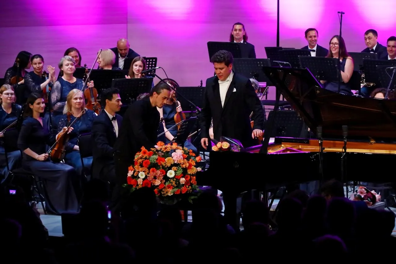 The renowned pianist - People's Artist of Russia Denis Matsuev performed with the National Symphony Orchestra of the Republic of Bashkortostan under the baton of Honored Artist of Bashkortostan, Chief Conductor Dmitry Kryukov. Matsuev pleased Ufa residents with the masterpieces of romanticism in a brilliant interpretation - the famous A Minor Concert for Piano and Orchestra by Edvard Grieg. After a long-standing ovation, the pianist delighted the audience with Rachmaninoff's Vocalise in Piano arrangement and the piece “In the Hall of the Mountain King” from the “Peer Gynt” suite by Edvard Grieg. After the performance, flowers were brought to the stage from the Head of the Republic of Bashkortostan Radiy Khabirov.