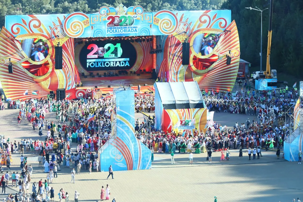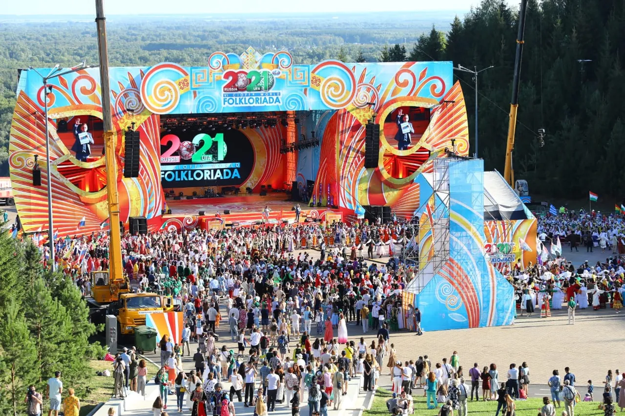Then a concert took place at the main stage of the Folkloriada in the amphitheater behind the Toratau Congress Hall. The concert was closed with a performance by the People's Artist of Russia Nadezhda Babkina and the Russian Song ensemble.