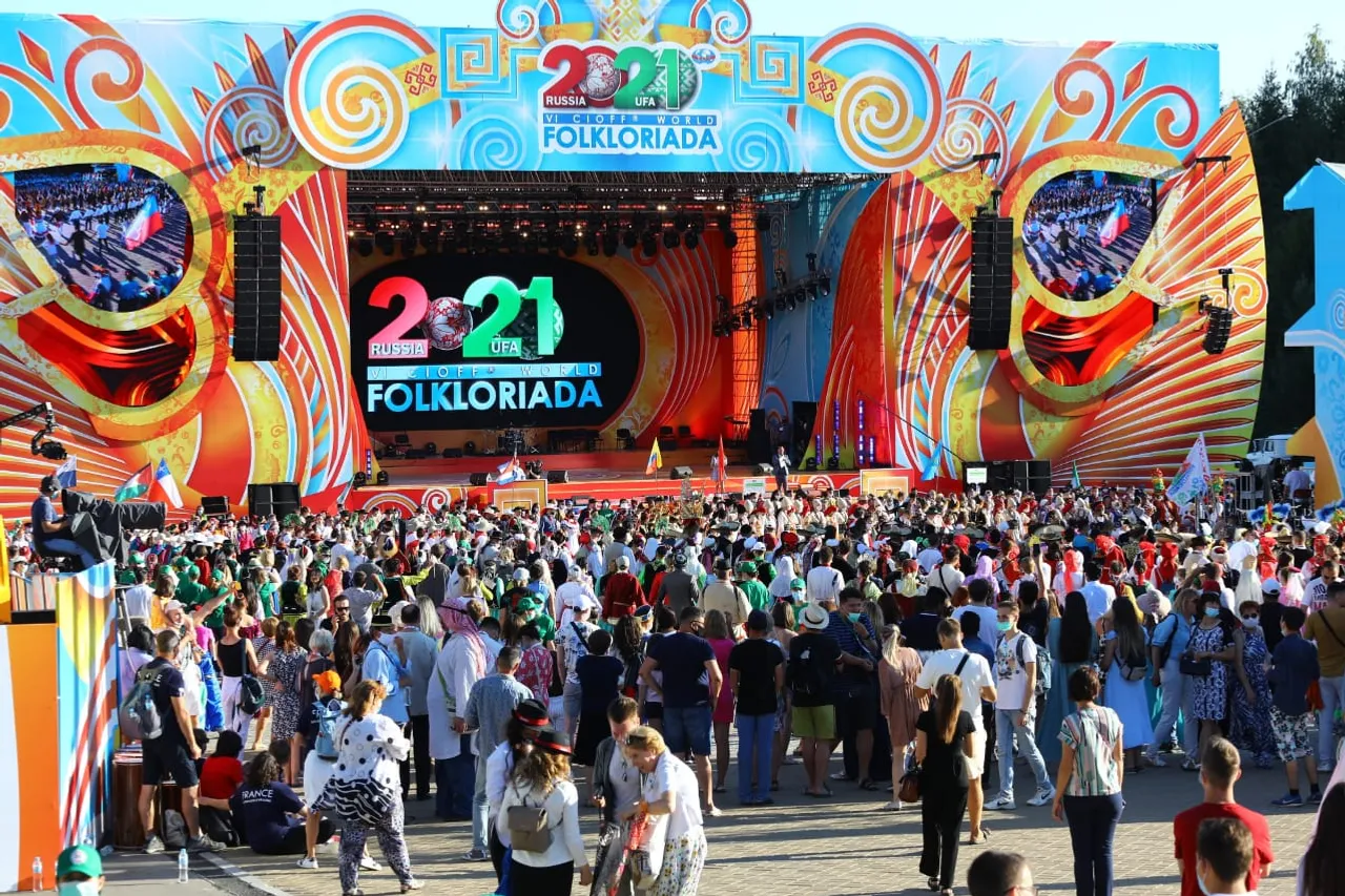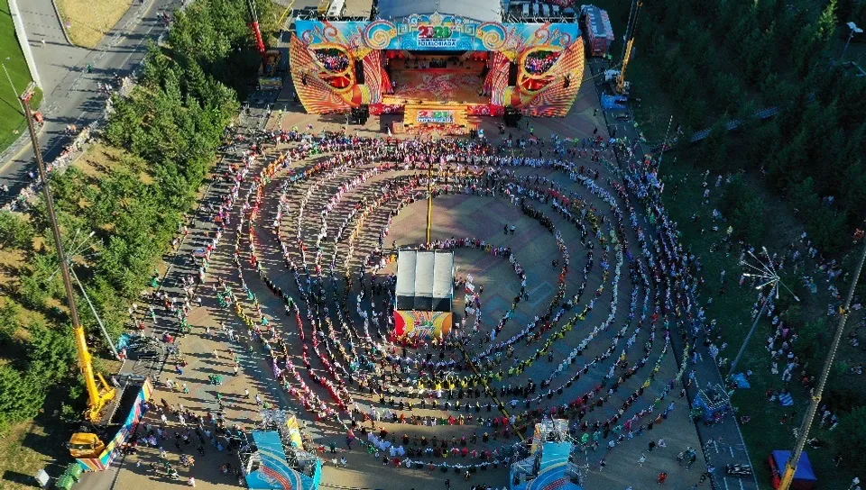 The round dance of the participants of the VI World Folkloriada, which they organized in the amphitheater behind the Congress Hall "Toratau" in Ufa, officially became a world record. the editor-in-chief and founder of the Russian Book of Records, Stanislav Konenko, announced this was from the stage.