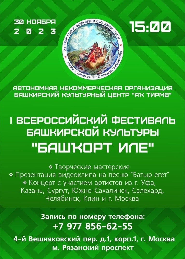 On November 30, the All-Russian Festival of Bashkir Culture, “Bashgort Ile,” will occur in Moscow. The organizer is the Bashkir cultural center “Ak Tirme”.