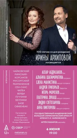 The Askar Abdrazakov Culture, Art, and Cinema Foundation is organizing a concert dedicated to the 100th anniversary of Irina Arkhipova — People’s Artist of the USSR, opera singer, teacher, and public figure.