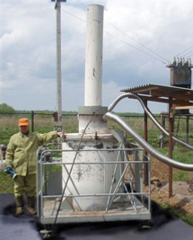 The unit represents two tanks, made of the alloyed heatproof steel. Due to high burning temperature (about 11000C) the complex organic compounds are fully decomposed into the simplest elements. The waste is burned down practically fully and the remains in the form of ashes make 3-5% of the original mass depending of the character of the waste burnt.