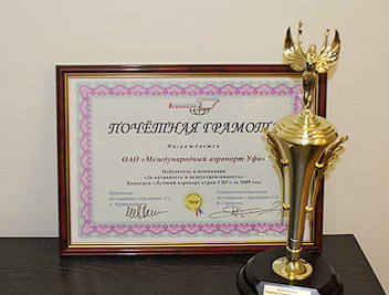 The international airport “Ufa” has won the contest “The best airport of the year in CIS countries” in the nomination “Activity and purposefulness” (in the category of the airports with the carrying capacity more than one million passengers per year).