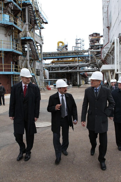 On April 20 the President RB Rustem Khamitov has visited the refineries of Ufa. The head of the Republic has paid a visit to four enterprises, belonging to JSC “BASHNEFT”. The catalytic cracking unit has become the first object in his route. It was launched in 1995. The benzene components are its main products. The unit is considered one of the most profitable at the refinery. Its capacity is meant for processing of 2,5 million tons of oil. In 2009 the unit was modernized. Now it is able to produce benzenes with high octane rating, belonging to the class Euro-4.
