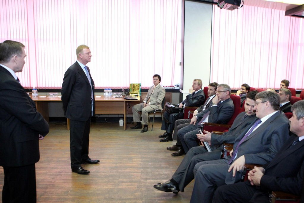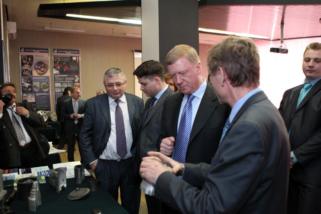 After that Anatoly Chubais has examined the Institute’s innovational center and its newest designs, in particular, the unit for production of the aviation engine’s hollow blades and the reeling machine for production of disks.