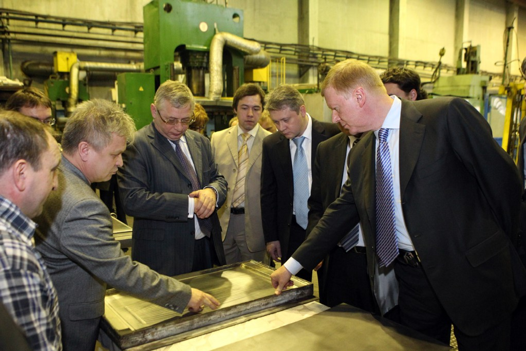 The “ROSNANO” delegation, headed by its President Anatoly Chubais, has visited the Institute of metal superplasticity problems under the Russian Academy of Sciences in Ufa. The director Radik Mylukov has acquainted the guests with the Institute’s activity.