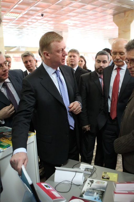 Delegation of JSC “ROSNANO”, headed by its President Anatoly Chubais, is found in Ufa. The Moscow guests have visited the exhibition of Bashkortostan’s projects in sphere of nanoindustry at Ufa State Aviation Technical University (UGATU). Here 15 stands with the projects, which are either already launched or will be developed in different branches of economics with the use of nanotechnologies and nanomaterials, are presented.