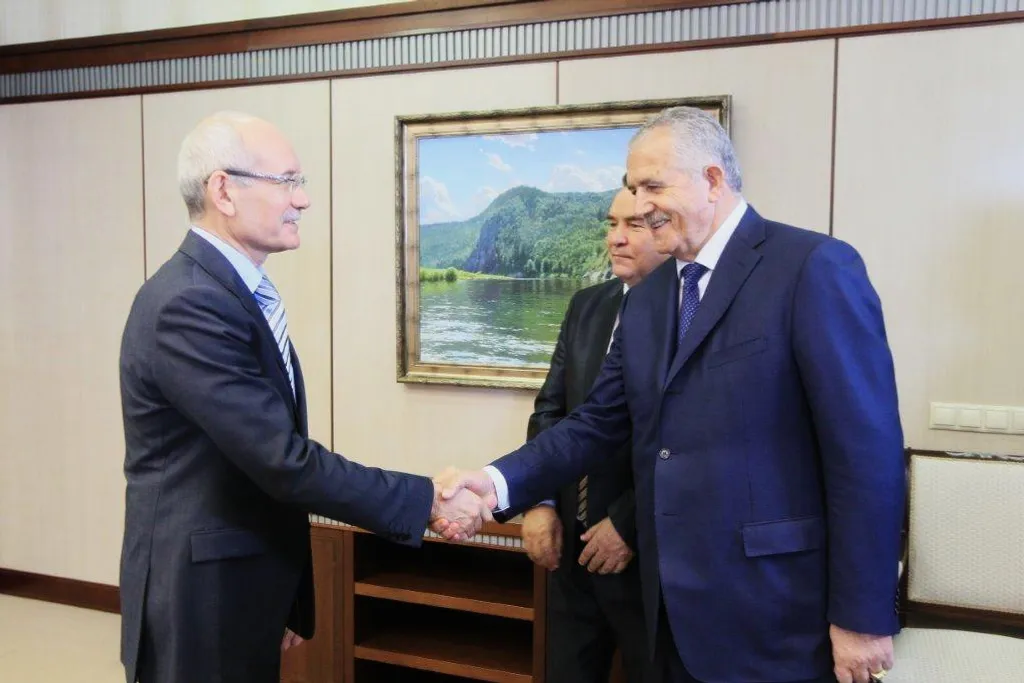 On May 18 the President of Bashkortostan Rustem Khamitov has held a meeting with the Ambassador Extraordinary and Plenipotentiary of Armenia in Russia Oleg Esayan, who arrived in Ufa for participation in the international forum “Big Chemistry”, the public affairs service of the President RB reported.