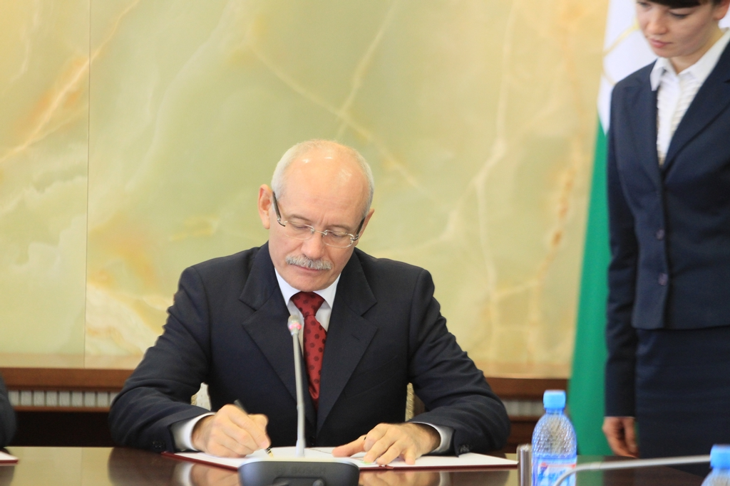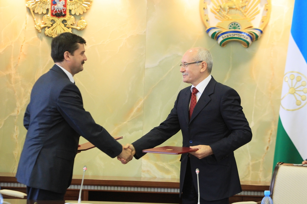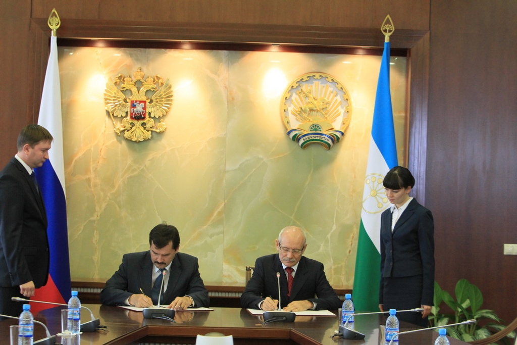 An agreement of cooperation is signed between the Government RB and the Federal Air Traffic Agency. The document was signed on Tuesday, September 18, by the President RB Rustem Khamitov and the head of the Federal Air Traffic Agency Alexander Neradko in Ufa. During the meeting in the Republic House representatives of Bashkir transport complex and their colleagues from the federal center have discussed some problems in preparation of Ufa airport for the forthcoming summits of Shanghai Cooperation Organization and BRICS.