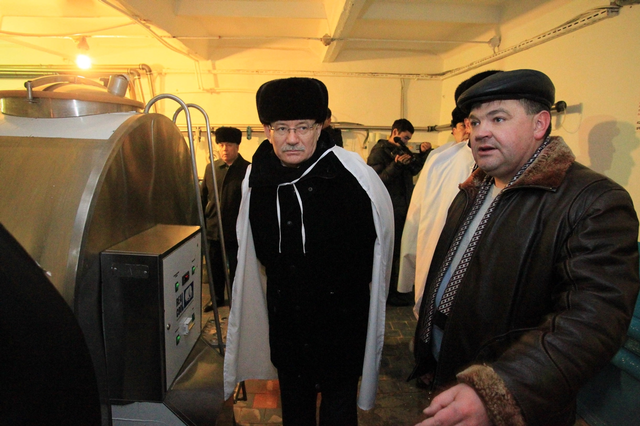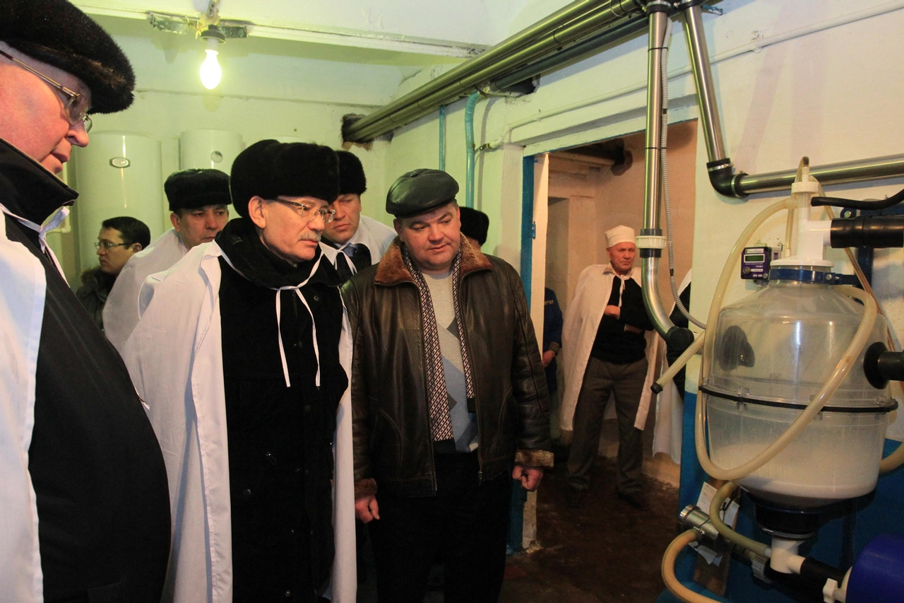In Big Aksakovo village in the "Druzhba" agricultural enterprise Rustem Khamitov attended a dairy complex, examined a platform for cattle fattening operation. The director of the enterprise Alexander Brazhnikov informed that in 2011 they purchased agricultural machinery for the sum of more than 18 million rbl., in 2012 for these purposes it was spent more than 9,5 million rbl. Speaking about losses due to the drought of the last years, the director estimated the damage as almost 6 million rbl.